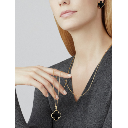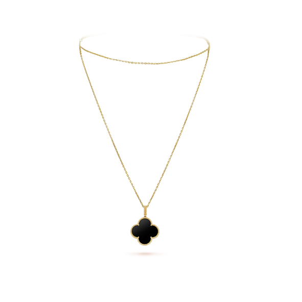 สร้อยคอยาว เงิน S925 จี้รูปใบโคลเวอร์สี่แฉก สีดํา