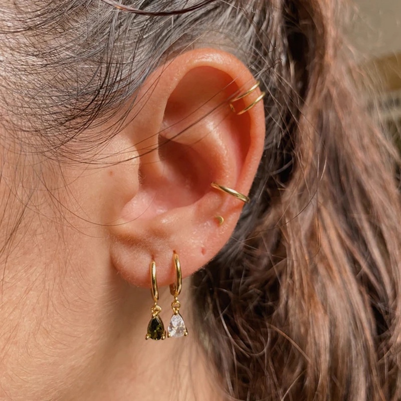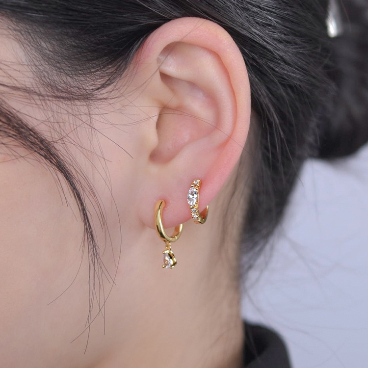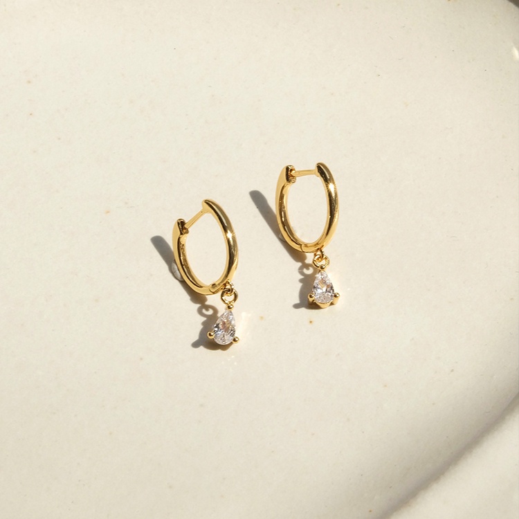 ต่างหูห่วง ประดับเพทาย รูปหยดน้ํา และหัวใจ สวยหรู แบบเรียบง่าย สไตล์ฝรั่งเศส