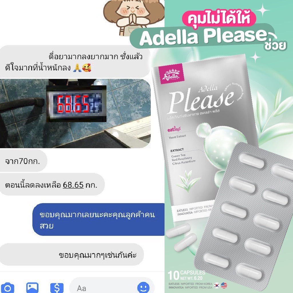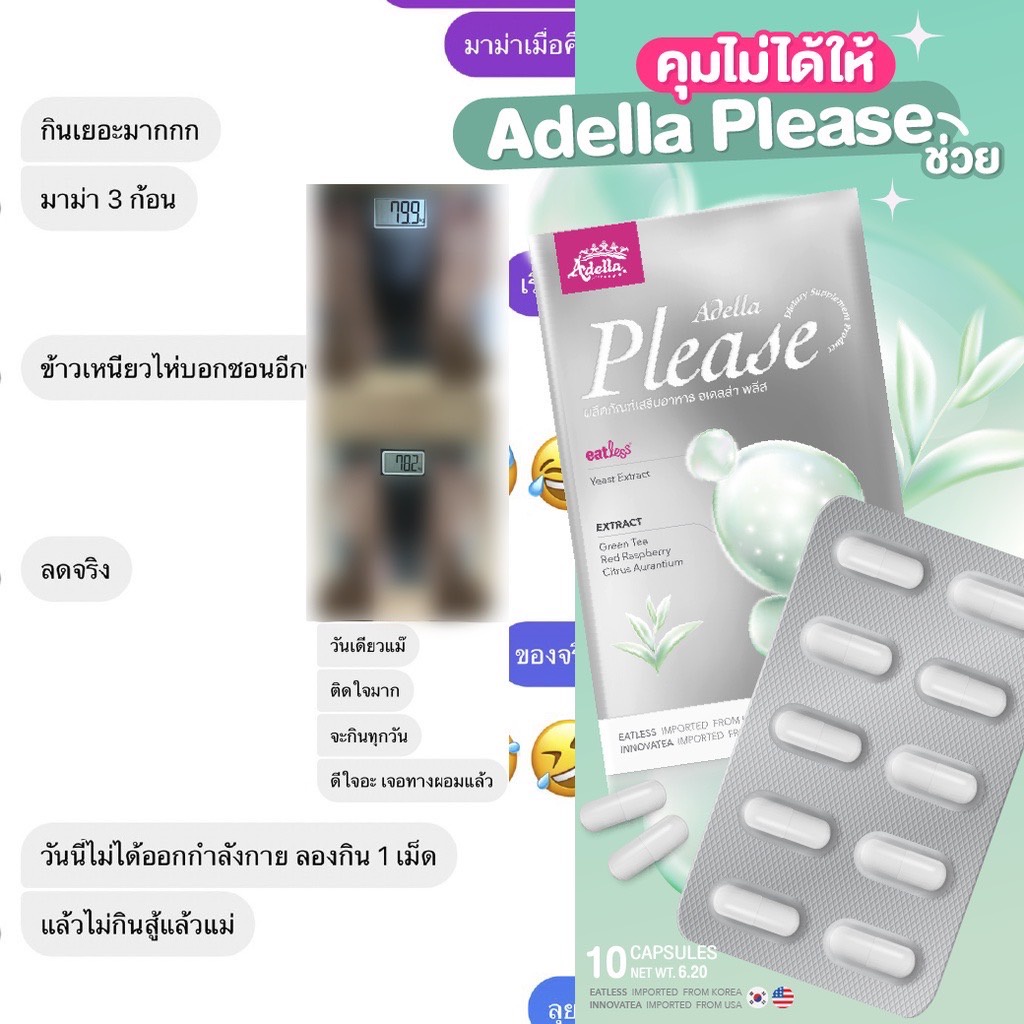 Adella Please บล๊อกแป้ง คุมหิว อิ่มนาน วิตามินนลดน้ำหนัก อเดลล่าพลีส