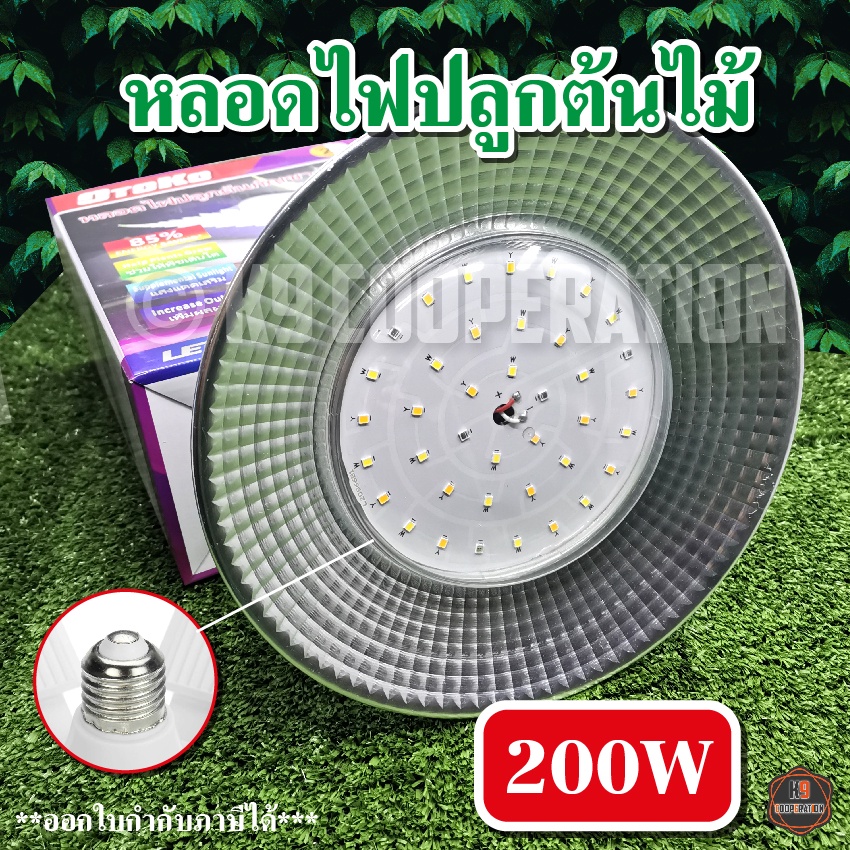 โคมไฟปลูกต้นไม้ ไฟปลูกผัก โคมไฟปลูกพืช 200W ไฟปลูกพืชจานบิน ขั้วเกลียว E27 ไฟบ้าน (แถมขั้วสาย 4ม.)