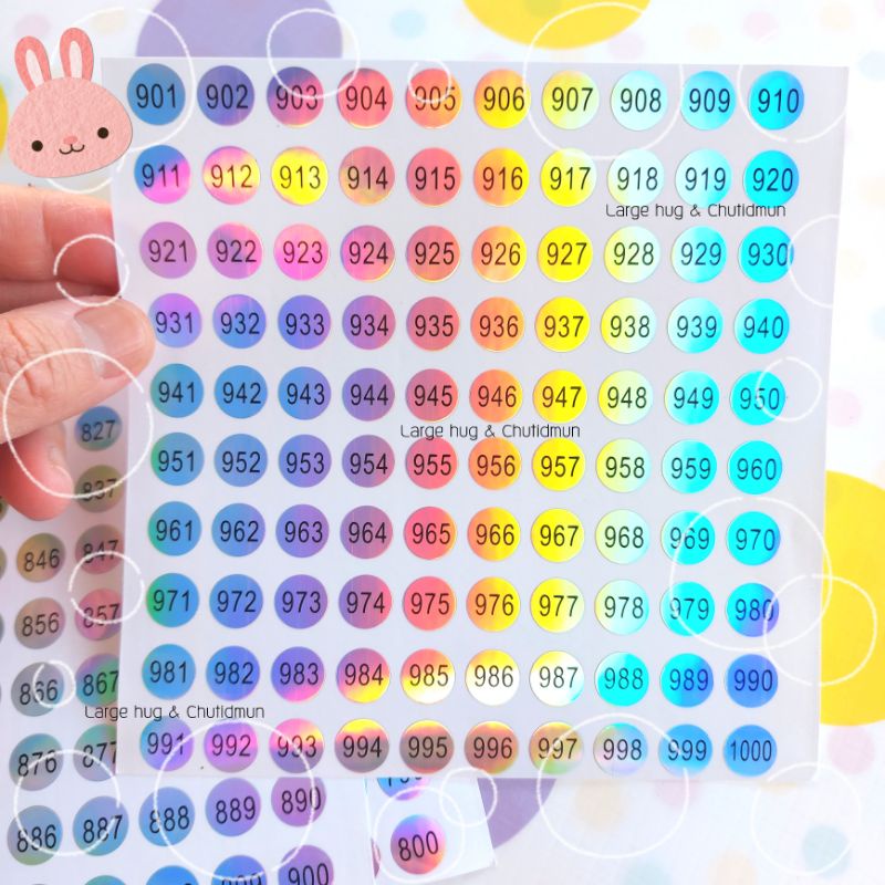 สติ๊กเกอร์ 1-1,000 พื้นสีเงิน กันน้ำ เส้นผ่าศูนย์กลาง 1 ซม.