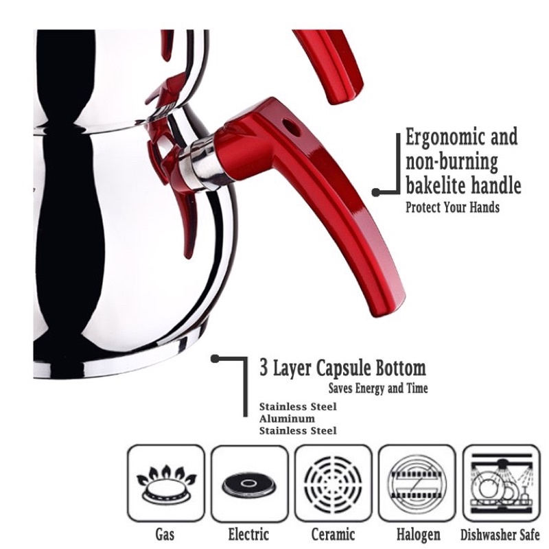 *พร้อมส่ง*กาต้มชา 2ชั้น จากตุรกี สแตนเลส 2 ขั้น