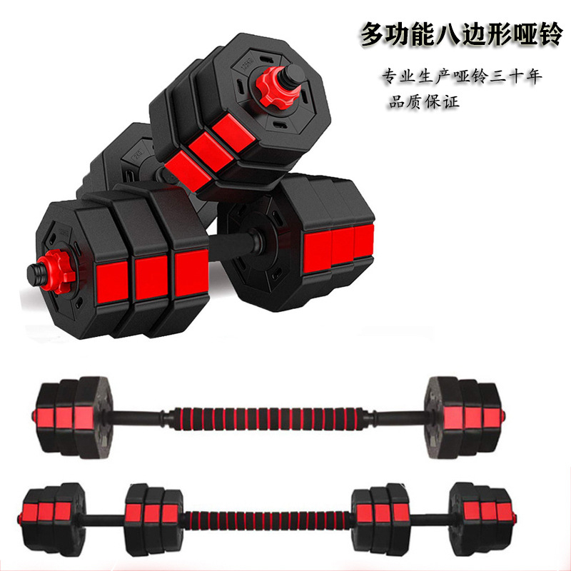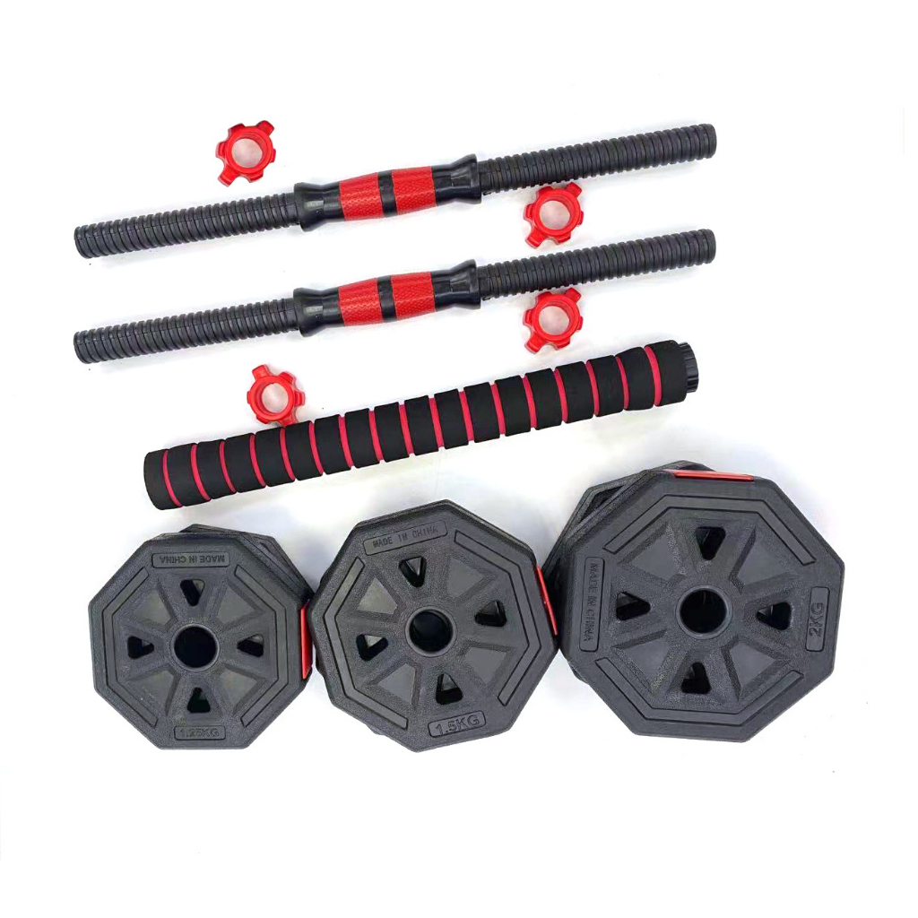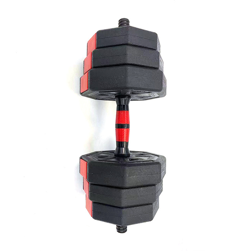 ดัมเบล พลาสติก ปรับน้ำหนัก 10-15 กิโลกรัม Dumbbell ดำเบล ดัมเบลพลาสติกเหลี่ยม.สีดำ-แดง ดัมเบลออกกำลังกาย ดัมเบลยกน้ำหนั