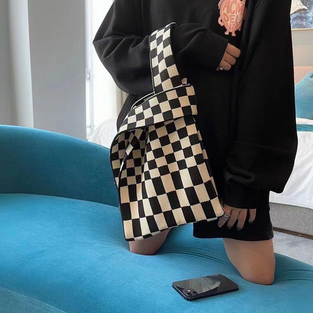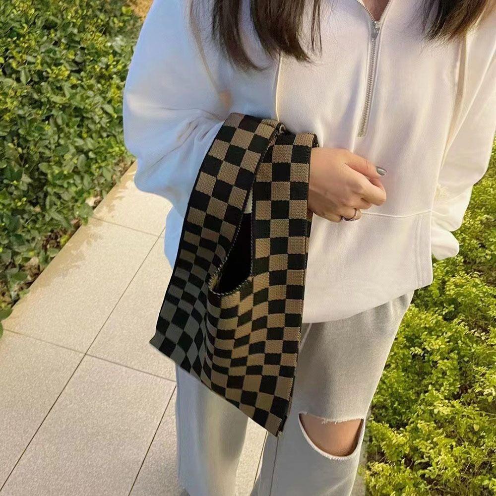 HOBBYIN กระเป๋าถือ กระเป๋าสะพายไหล่ กระเป๋าช้อปปิ้ง ผ้าถัก ขนาดเล็ก สําหรับผู้หญิง