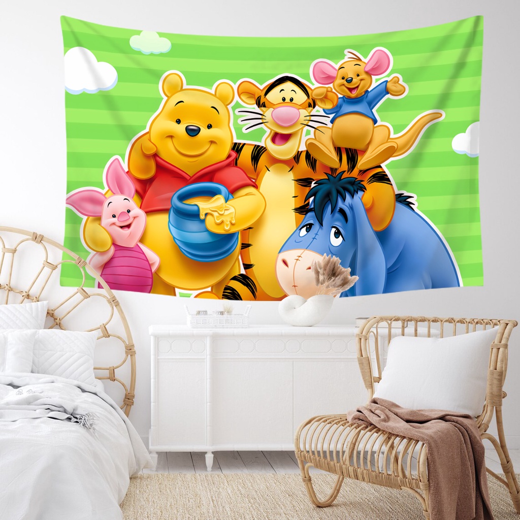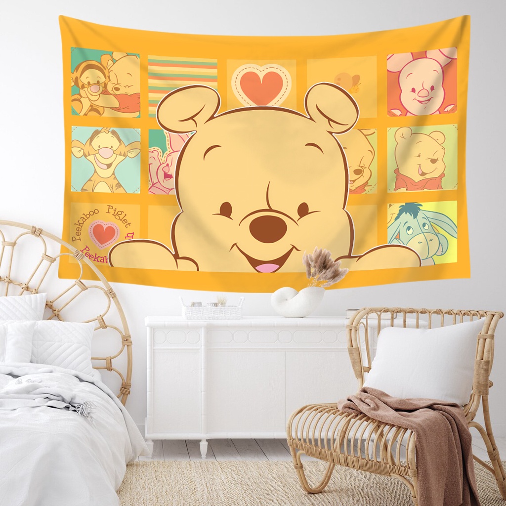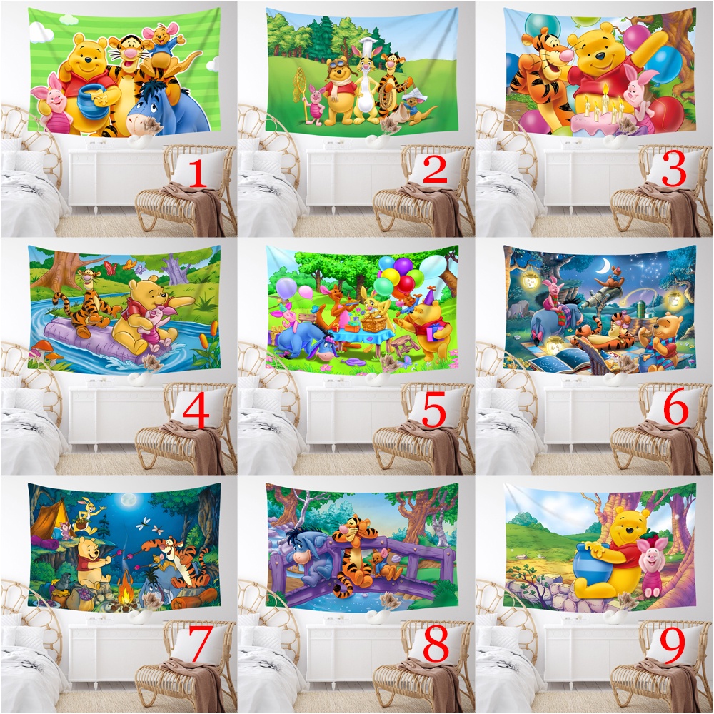 พรมปูพื้น ผ้าโพลีเอสเตอร์ไฟเบอร์ พิมพ์ลายหมีพูห์ สําหรับตกแต่งห้องนั่งเล่น ห้องนอน หอพัก
