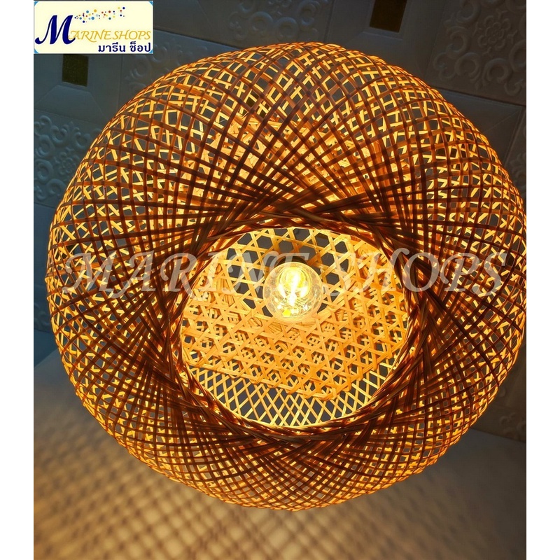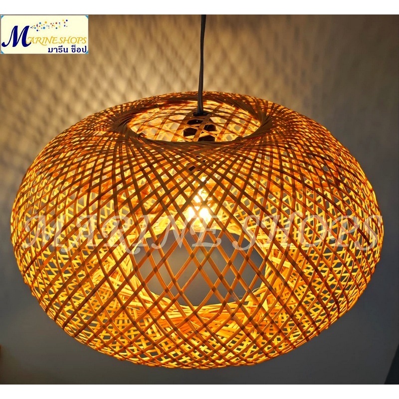 MARINE SHOPS มารีน ช็อป โคมไฟไม้ไผ่สาน จักสาน ประดับ ตกแต่ง เพดาน ทรงโดนัท กลม