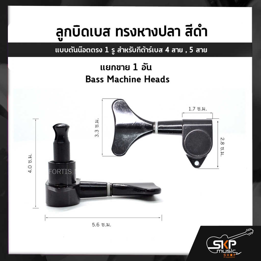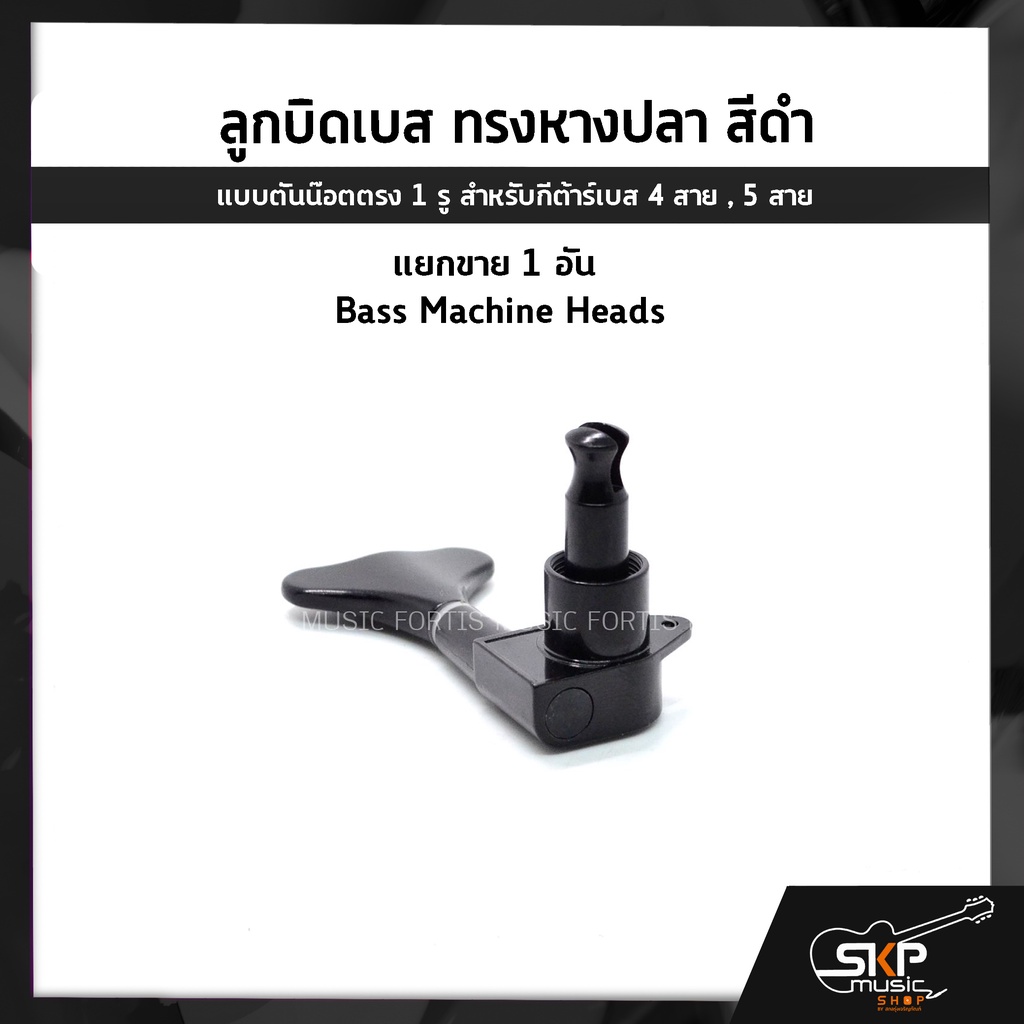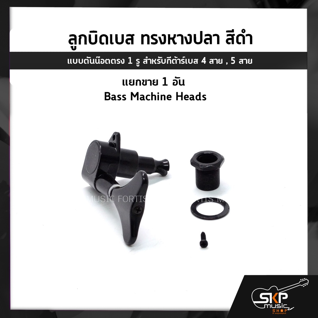 ลูกบิดเบส ทรงหางปลา สีดำ แบบตันน๊อตตรง 1 รู สำหรับกีต้าร์เบส 4 สาย , 5 สาย , แยกขาย 1 อัน Bass Machine Heads