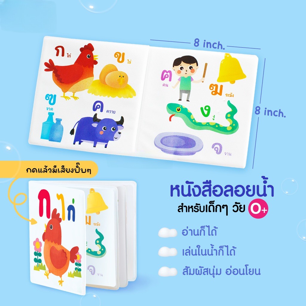 ⭐อ่านก็ได้ เล่นในน้ำก็ได้ สัมผัสนุ่ม อ่อนโยนต่อผิวลูก สีสันสดใสสวยงาม ดึงดูดและกระตุ้นสายตาเด็กๆ