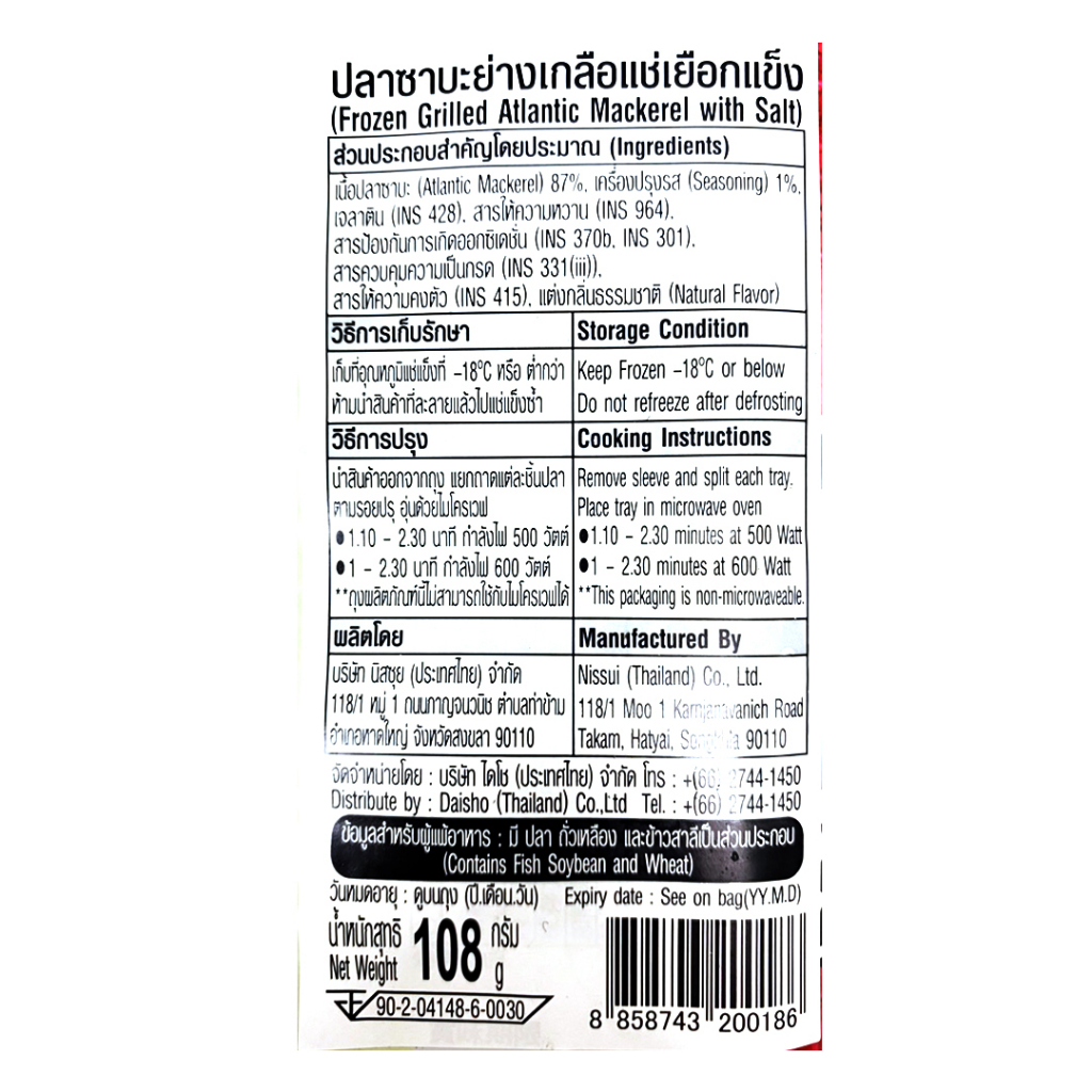 นิสซุย ซาบะย่างเกลือ ขนาด 108 กรัม (4 ชิ้น) – Nissui Saba Shioyaki