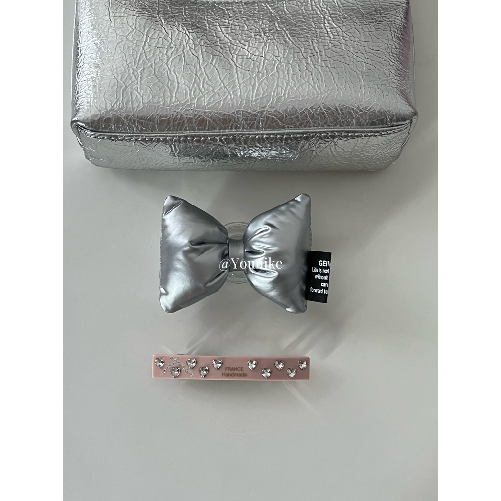 ตัวยึดโทรศัพท์มือถือ ประดับโบว์น่ารัก สามมิติ สีเงิน ถอดออกได้ ออกแบบดี เข้ากับทุกชุด แฟชั่นสําหรับเด็กผู้หญิง