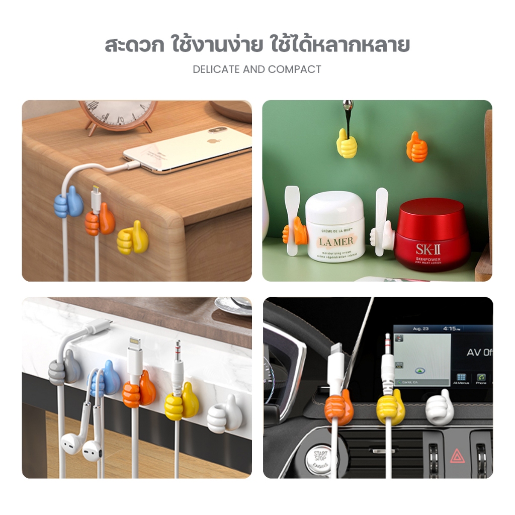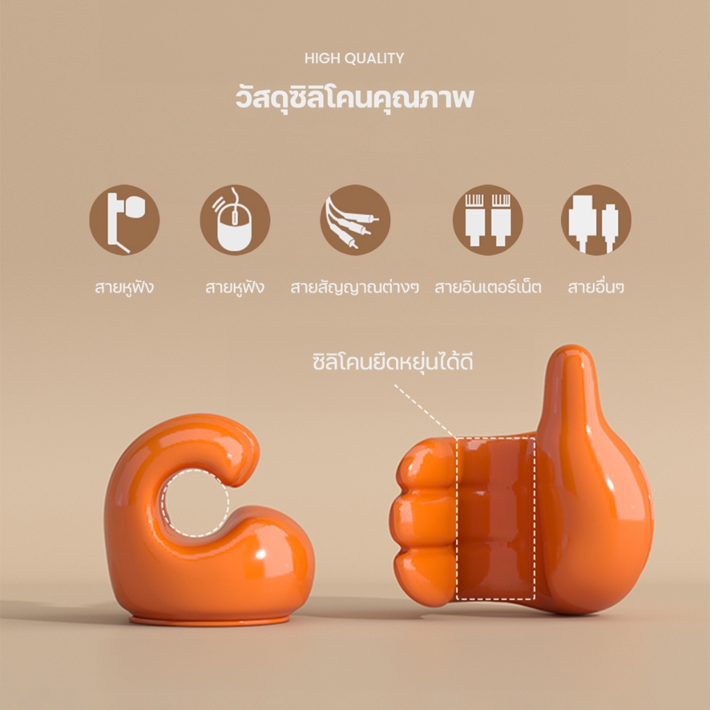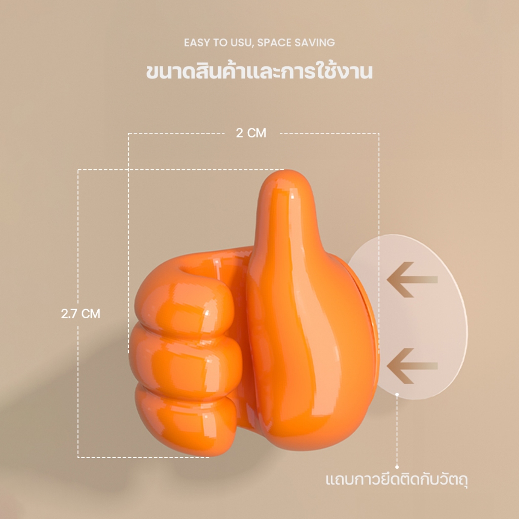【ลดล้างสต็อกพิเศษ】ตะขอติดผนัง ซิลิโคนจัดระเบียบสาย รูปนิ้วโป้ง 3D สำหรับแขวนกุญแจ สายชาร์จ ของใช้อเนกประสงค์