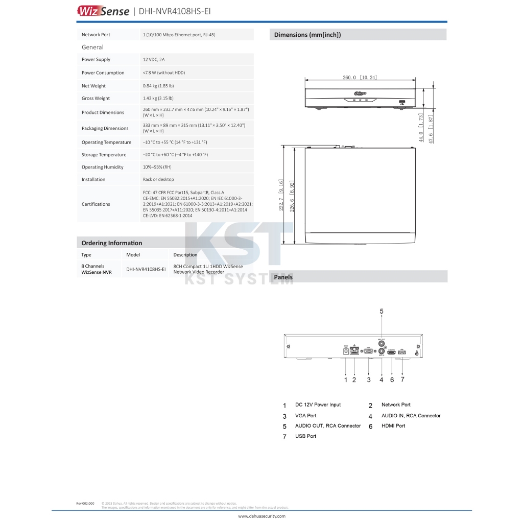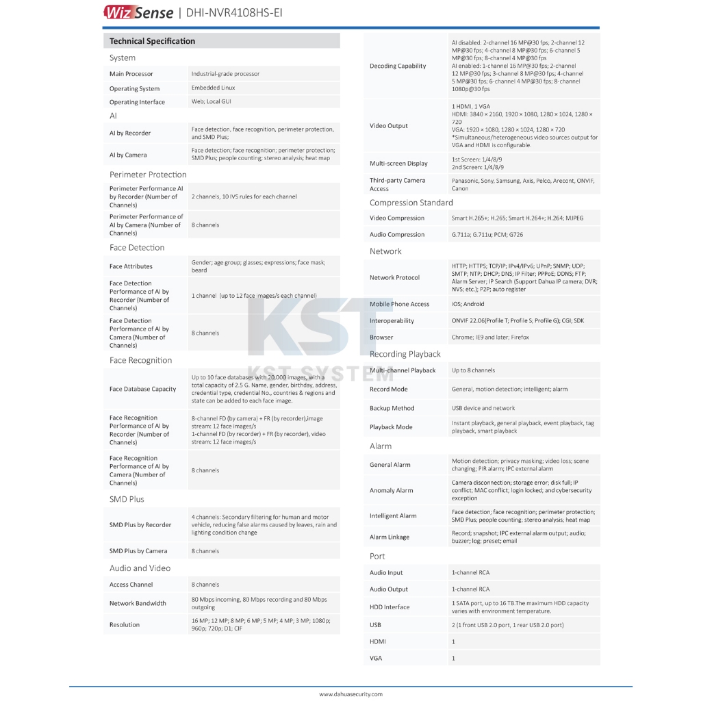 NVR4108HS-EI เครื่องบันทึก Dahua NVR WizSense 8ช่อง 1SATA