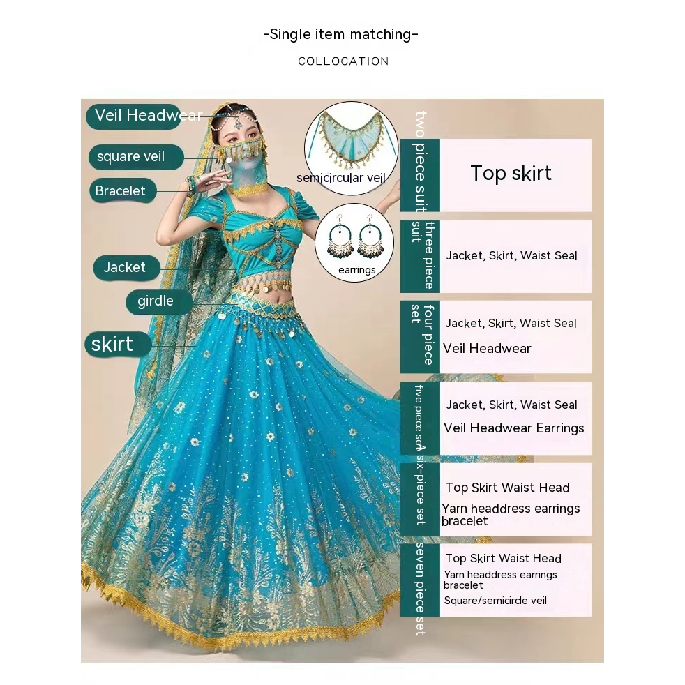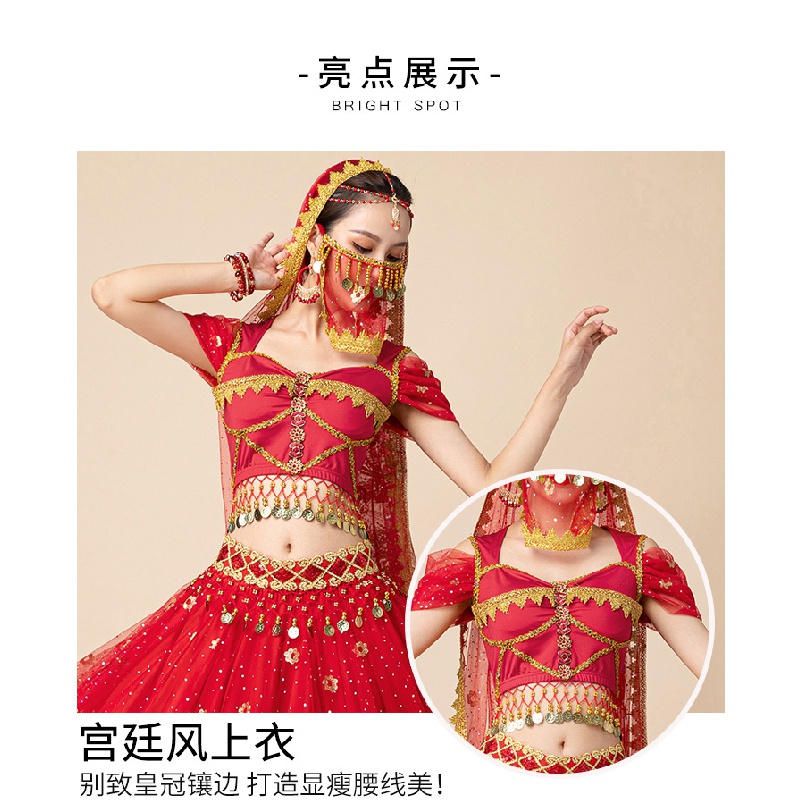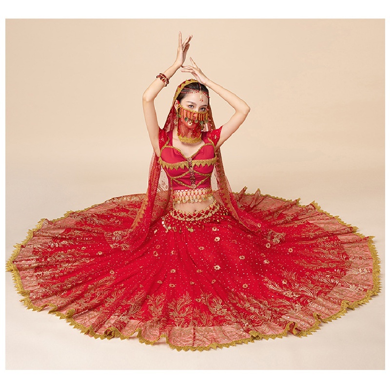 แฟชั่น ใหม่สไตล์อินเดียเต้นรําเครื่องแต่งกายท้องเต้นรําแกว่งใหญ่กระโปรงยาวเต้นรําที่แปลกใหม่ประสิทธิภาพเครื่องแต่งกายสูทเสื้อผ้าสตรี