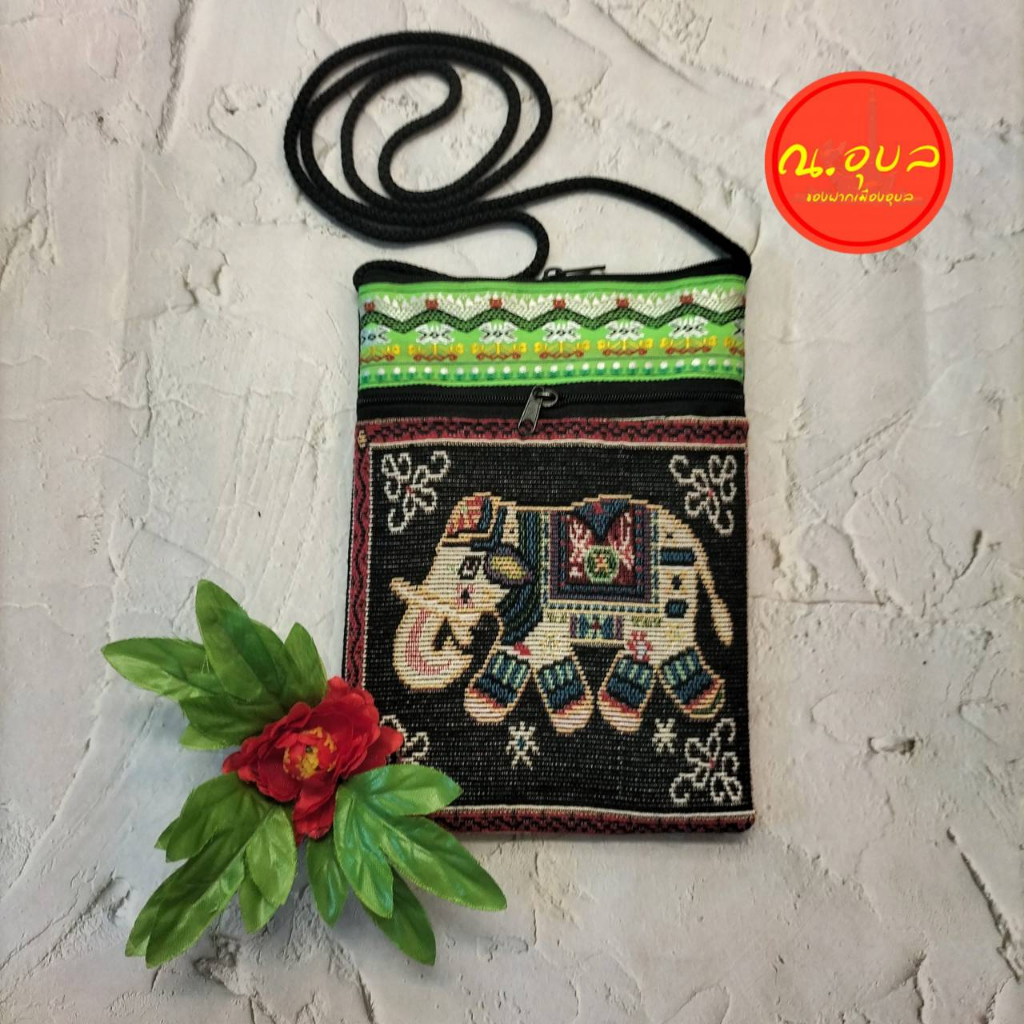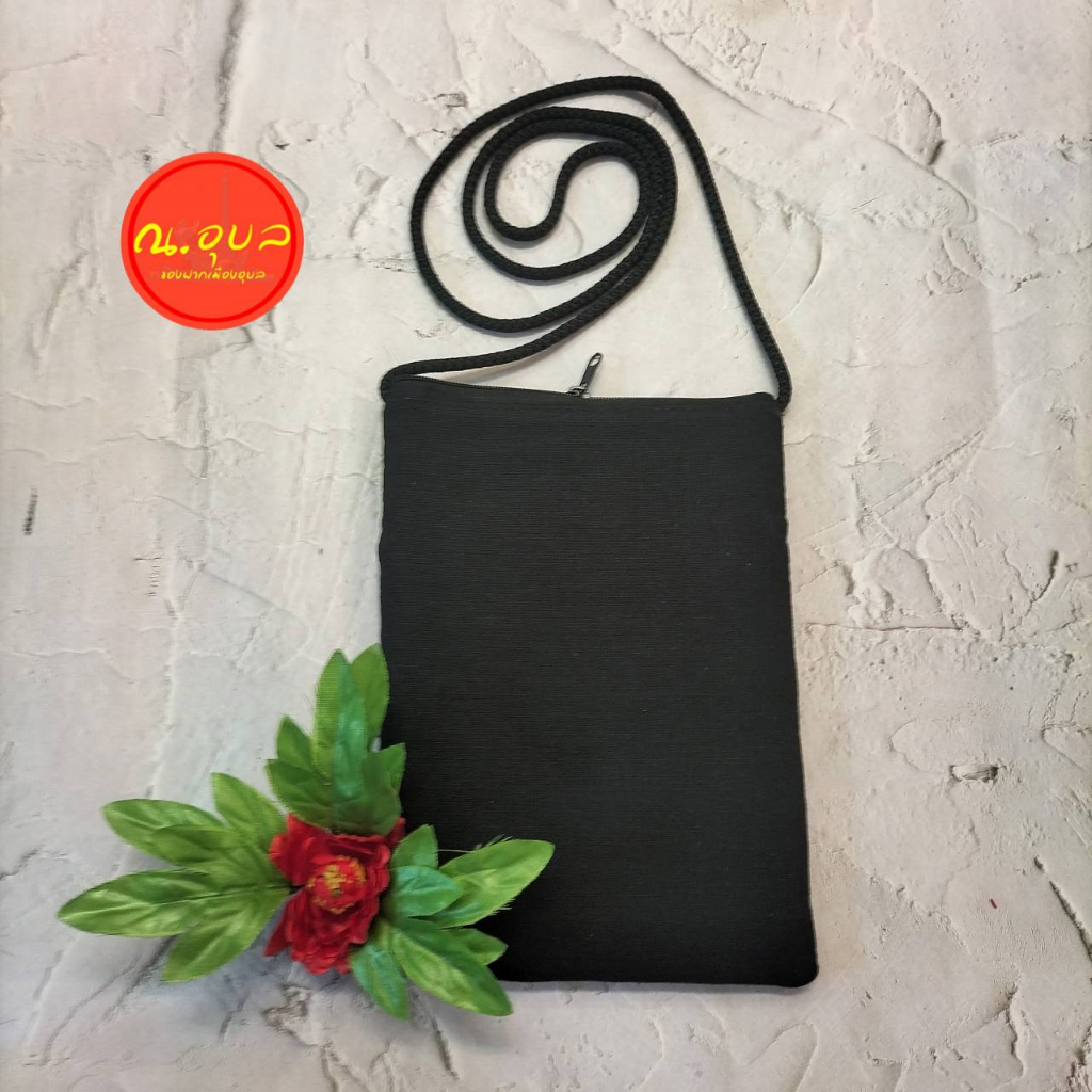 ???กระเป๋าสายสะพายเชือกดำ งานผ้านากาแต่งหน้ากระเป๋าลายช้าง/ลายนกฮูก ???