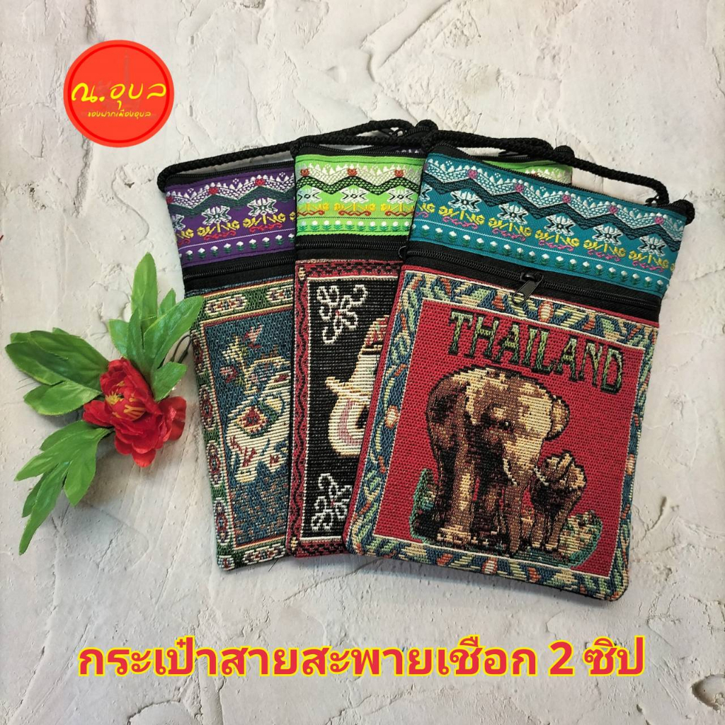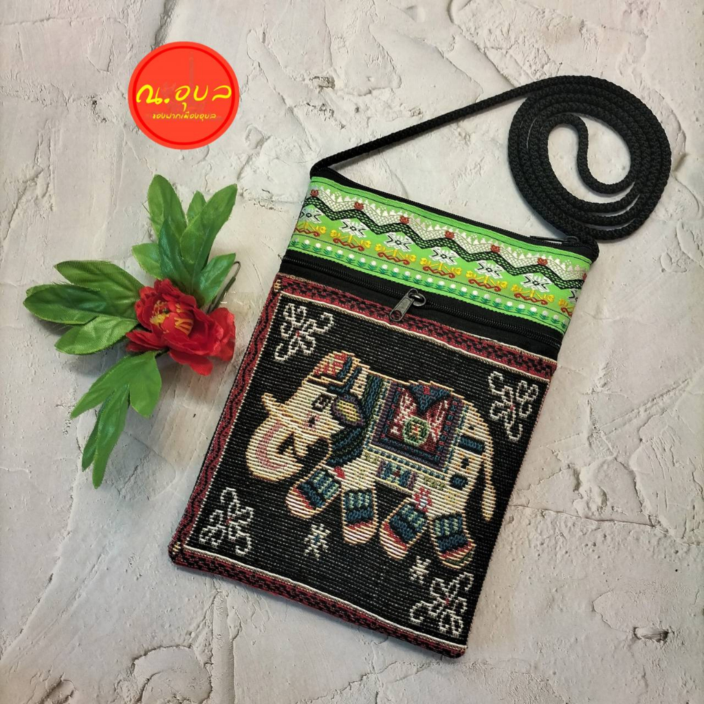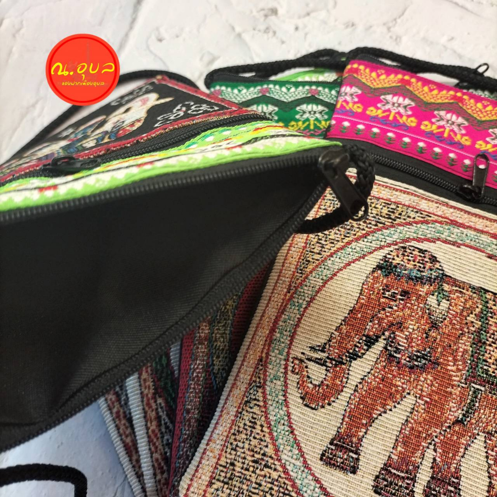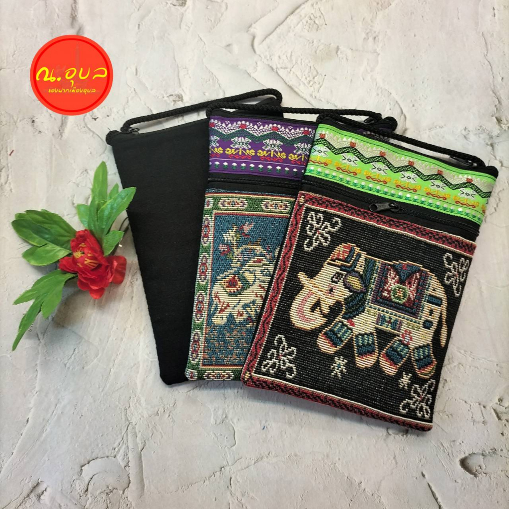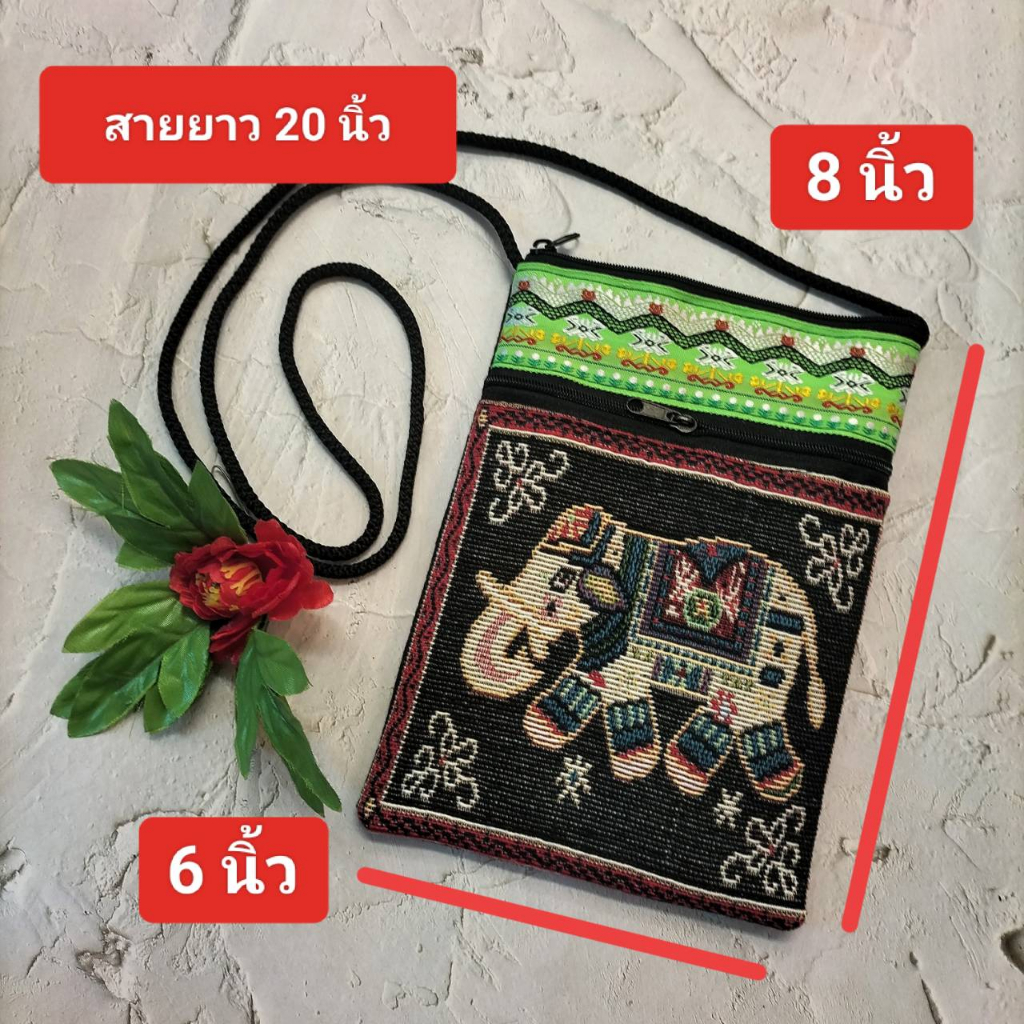 ???2 ซิป กระเป๋าสายสะพายเชือกดำ งานผ้านากาแต่งหน้ากระเป๋าลายช้าง/ลายนกฮูก ??คาดแถบคละสี/1ใบ ร้านขอส่งแบบสุ่มแถบคาดสี??