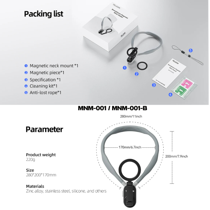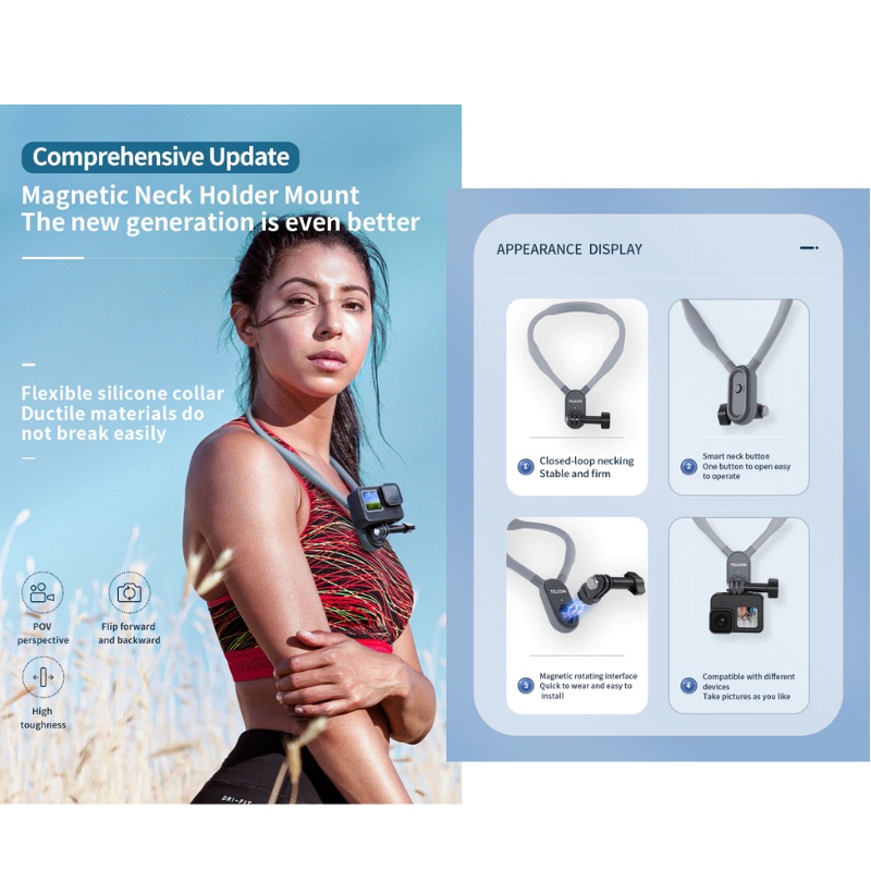 Telesin สายคล้องคอ แบบแม่เหล็ก สำหรับGOPROทุกรุ่น,DJI Action 6/5Pro/4/3,Pocket 3 /Insta360/มือถือ