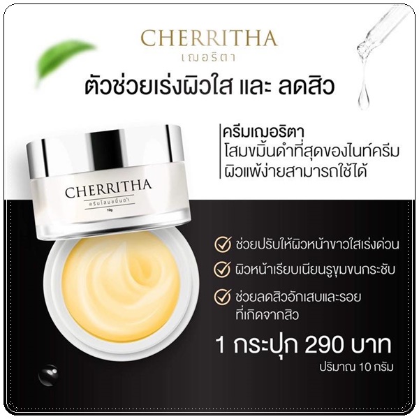 CHERRITHA ครีมโสมเฌอริตา เป็นครีมที่เน้นในเรื่องของสิว ซึ่งผู้ที่มีผิวแพ้ง่าย