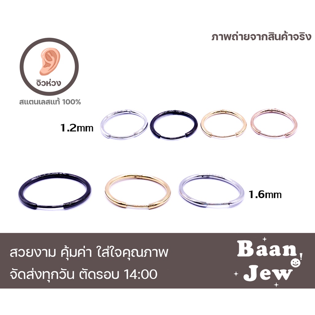จืวหูห่วง ต่างหูห่วง สแตนเลส 316L หนา 1.2mm 1.6mm ราคาต่อ 1 ข้าง