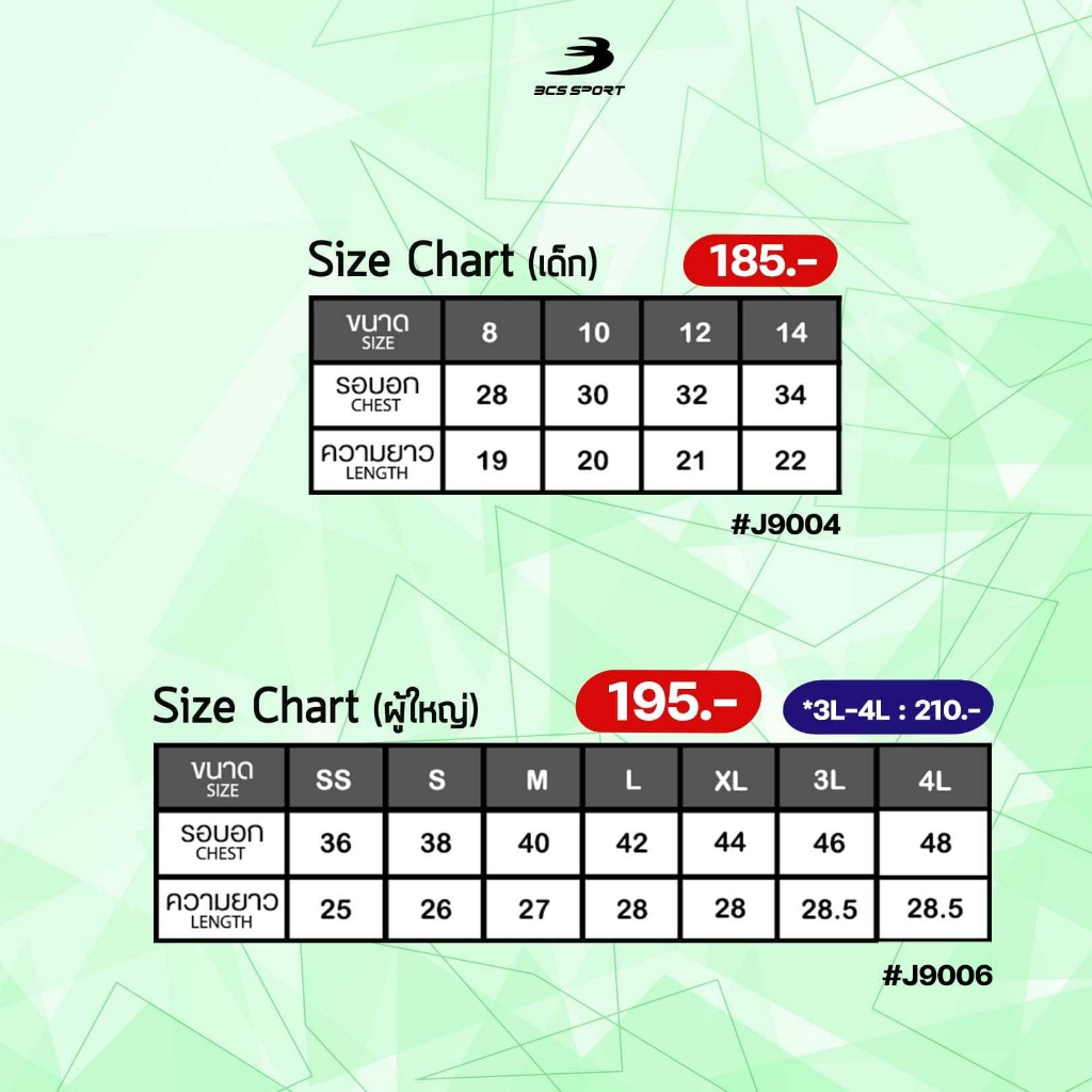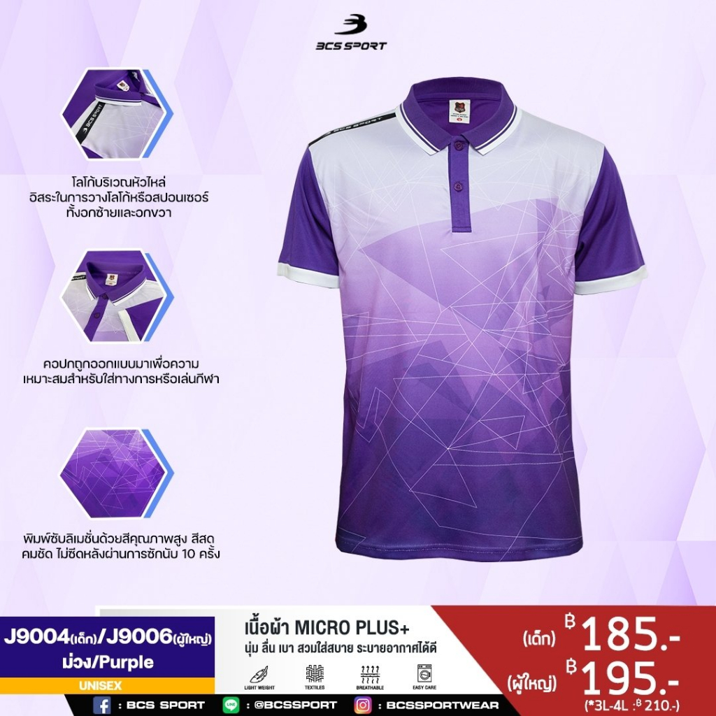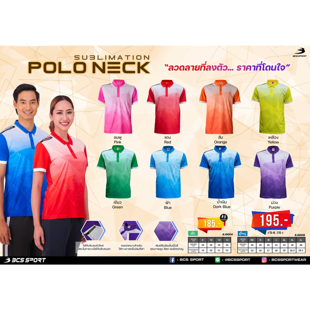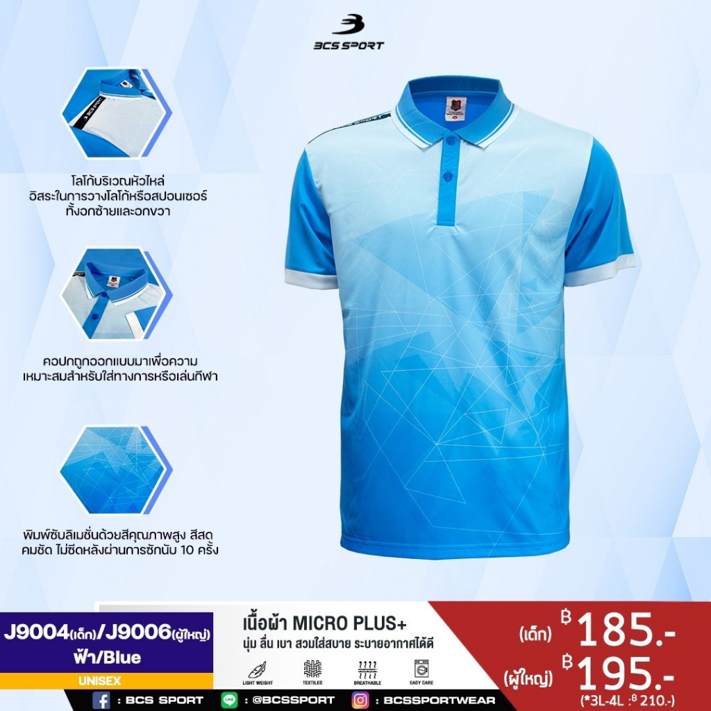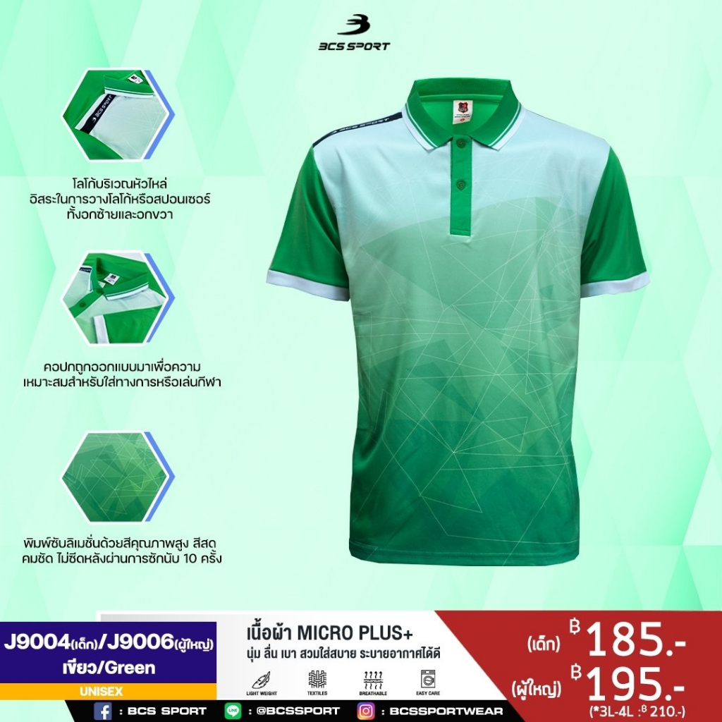 เสื้อพิมพ์ลาย/กีฬา เสื้อโปโล BCS SPORT รหัส J9004/J9006 เสื้อโปโลเด็กและผู้ใหญ่ ชุดที่ 1 ของแท้100%