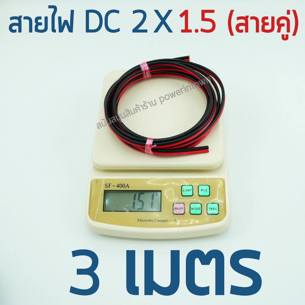 สายไฟ DC 2x1.5 ยาว 3 เมตร ทองแดงแท้ สายคู่ สำหรับเดินไฟ DC