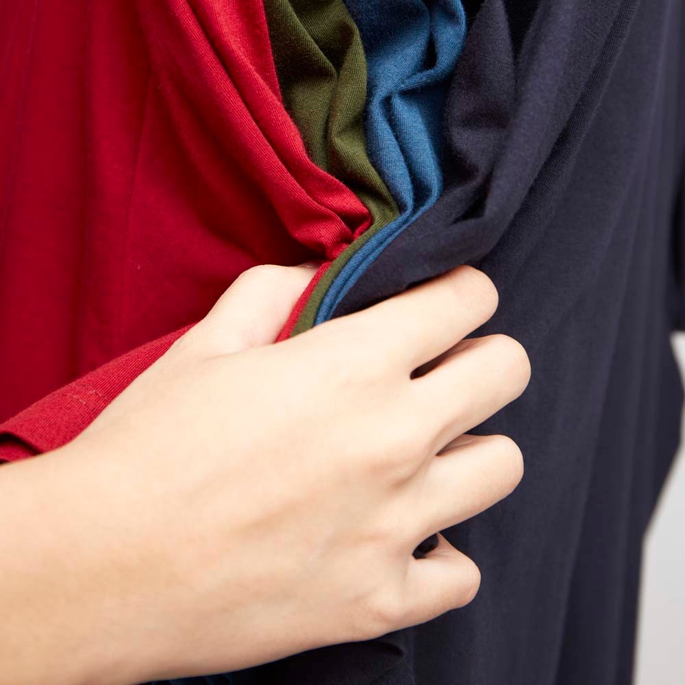 ทำจากผ้าคอตตอน 100% โปร่งเบา ใส่แล้วไม่อึดอัด ระบายอากาศได้ดีเยี่ยม