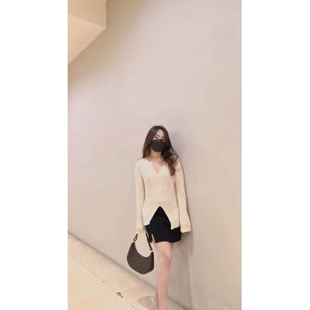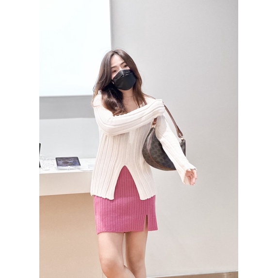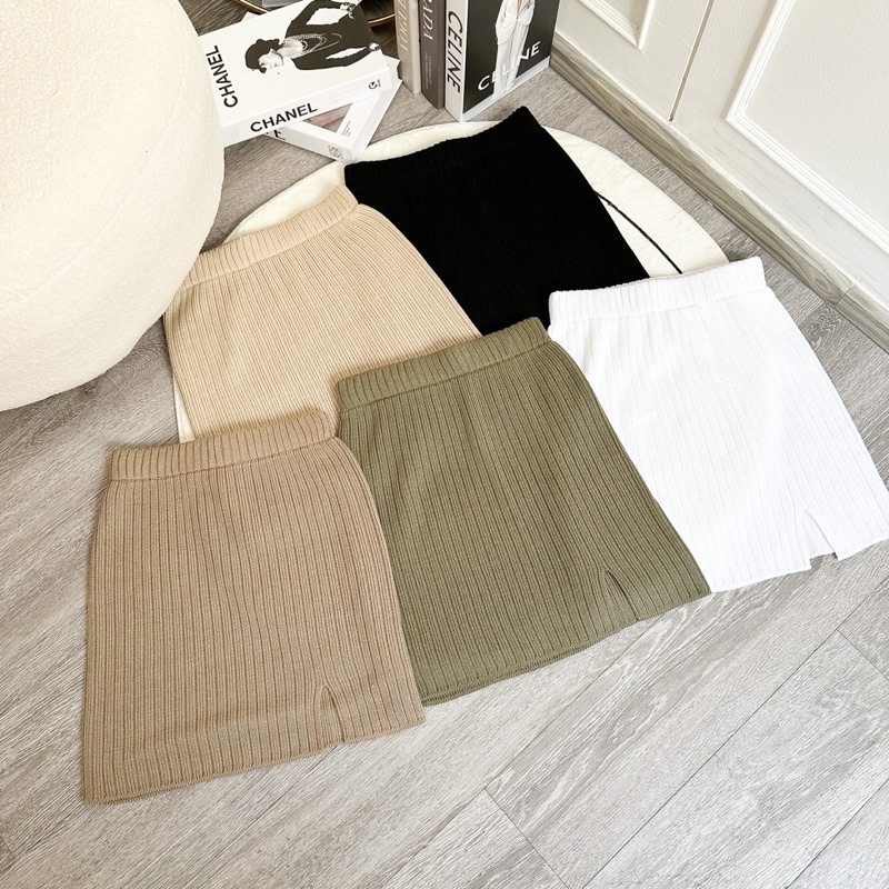กระโปรงสั้นไหมพรหมเนื้อหนา ทรงเอ ผ่าข้าง?พร้อมส่ง