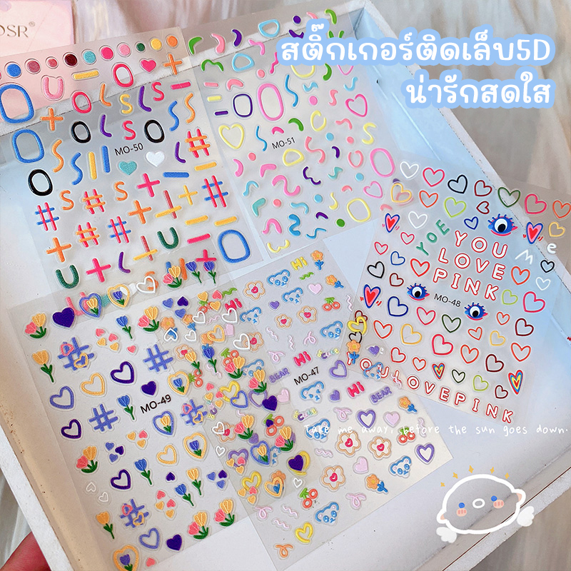 ?ร้านไทย? สติ๊กเกอร์ติดเล็บ5D 80ชิ้น/แผ่น!!! สไตล์เกาหลี สติ๊กเกอร์ติดเล็บ สติกเกอร์แต่งเล็บ งานแพง ดีไซน์น่ารัก