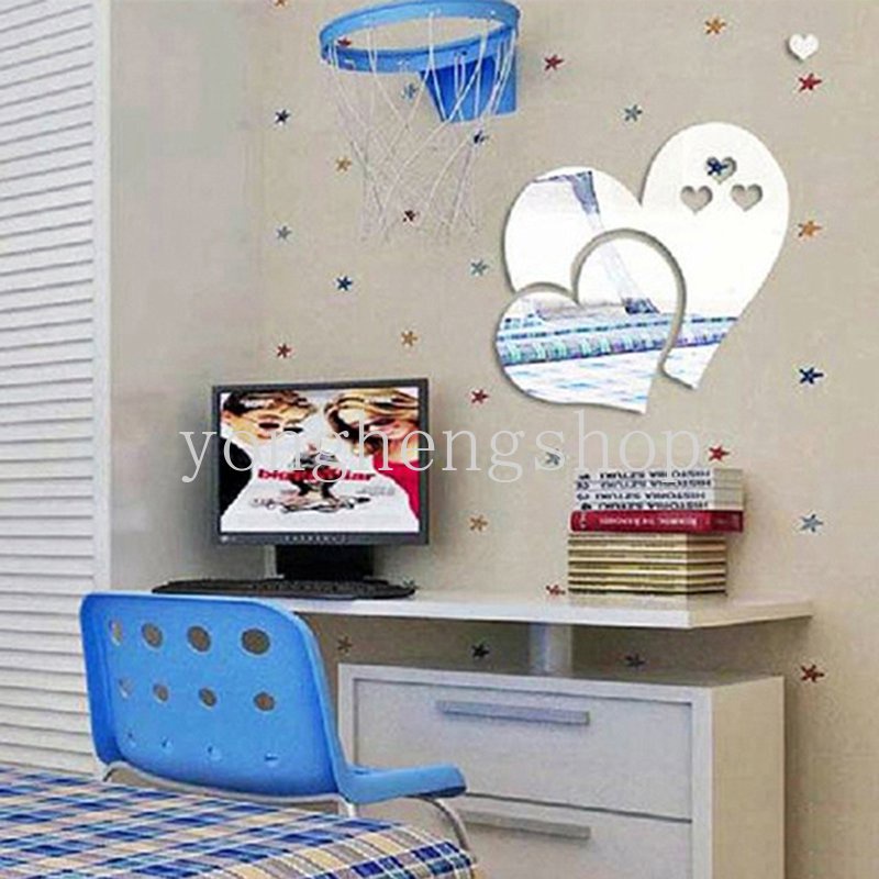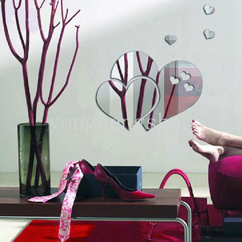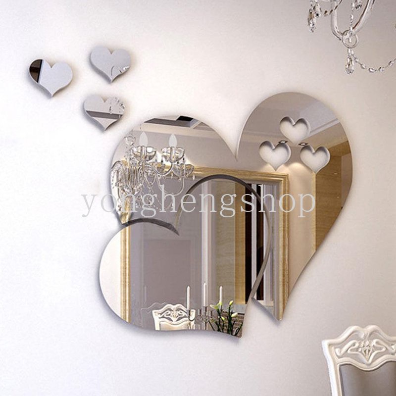 สติกเกอร์กระจกอะคริลิค รูปหัวใจ 3D DIY สําหรับติดตกแต่งผนังบ้าน ห้องนอน ห้องนั่งเล่น 5 ชิ้น ต่อชุด