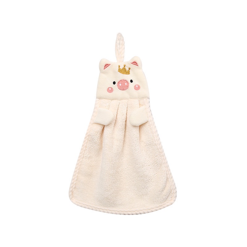 ผ้าขนหนูเช็ดมือ ดูดซับน้ําได้ดี ลายหมูน่ารัก สีพื้น สําหรับใช้ในครัวเรือน