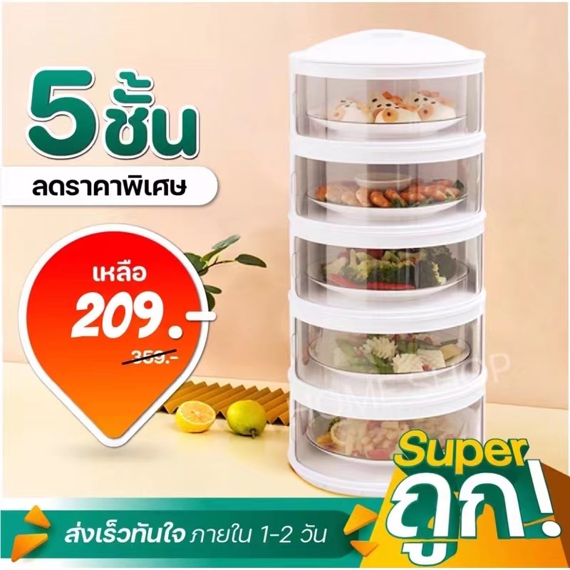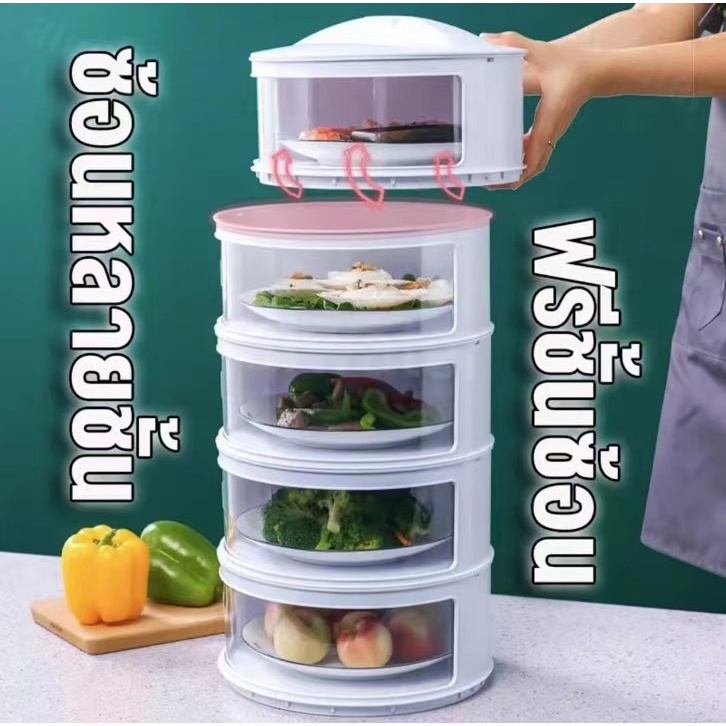 เก็บอาหาร ฝาครอบอาหาร 3/4/5 ชั้นเก็บอุณหภูมิ ชั้นวางอาหาร สไลด์เปิด-ปิด ป้องกันเชื้อโรค กันแมลง ถนอมอาหาร ชั้นเก็บอาหาร