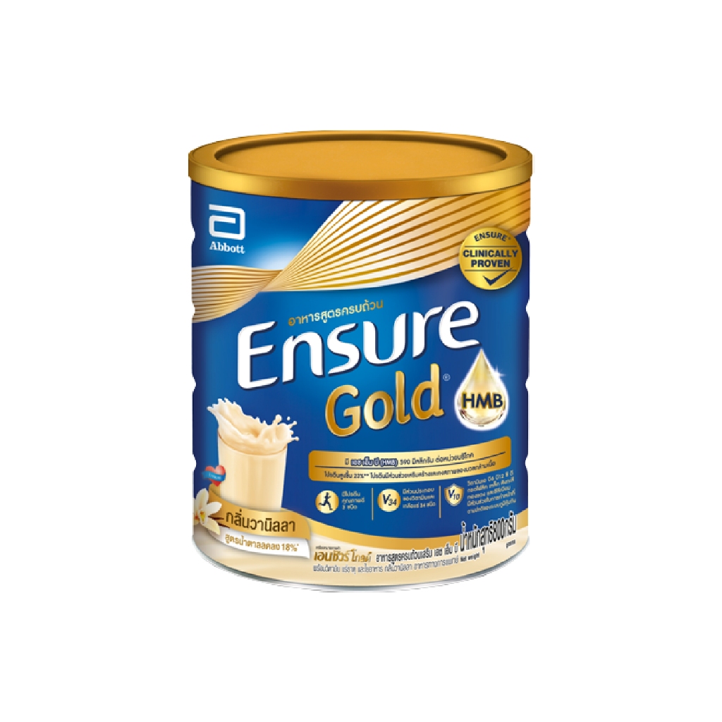 Ensure Gold Vanilla เอนชัวร์ โกลด์ ชนิดผง กลิ่นวานิลลา อาหารสูตรครบถ้วนสูตรน้ำตาลลดลง ขนาด800g 21035