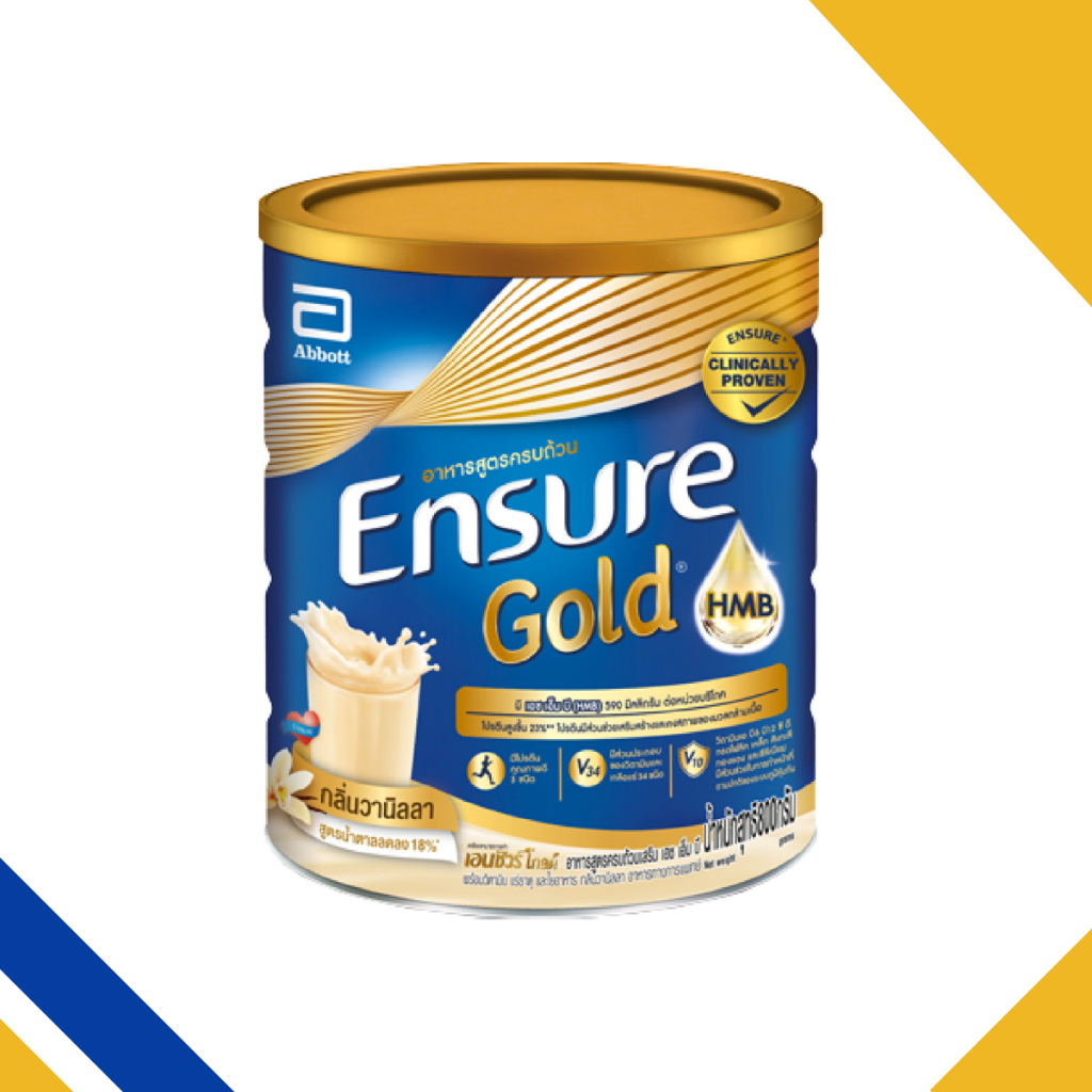 Ensure Gold Vanilla เอนชัวร์ โกลด์ ชนิดผง กลิ่นวานิลลา อาหารสูตรครบถ้วน สูตรน้ำตาลลดลง ขนาด 800 กรัม 21035