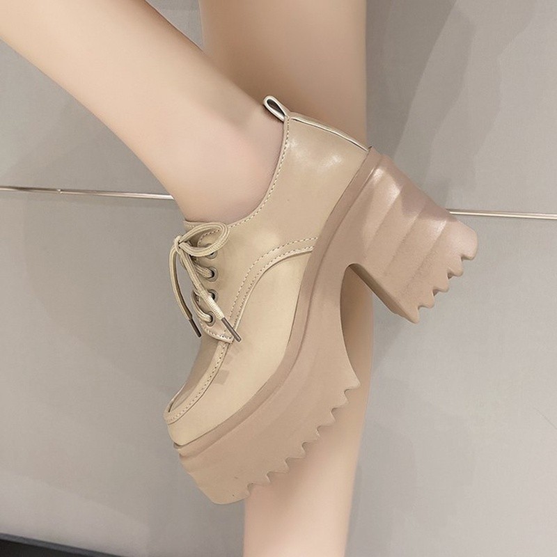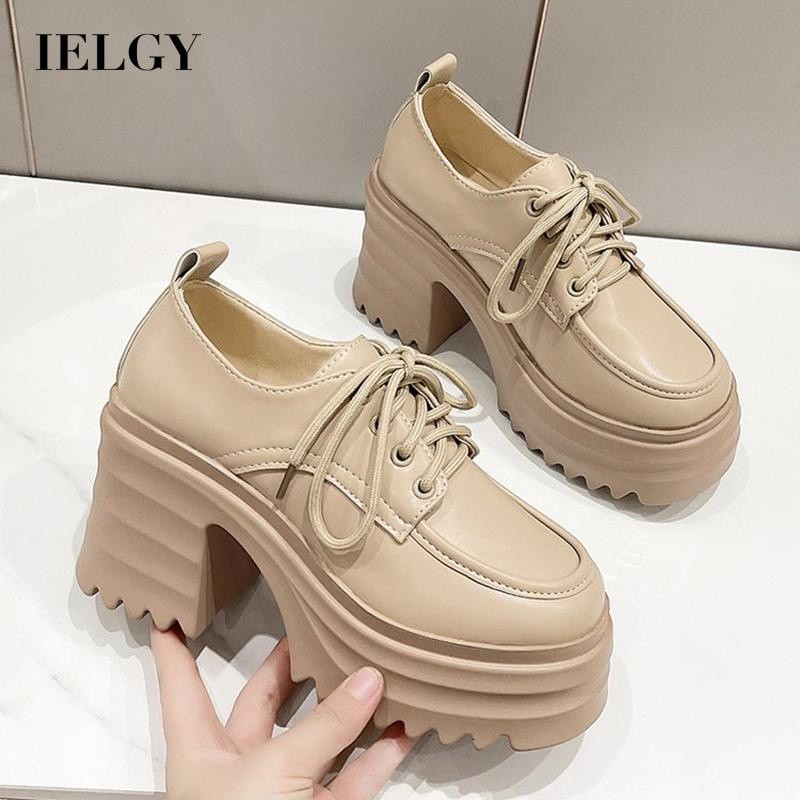 IELGY ผู้หญิงสไตล์อังกฤษด้านล่างหนาเพิ่มความสูงรองเท้าหนังขนาดเล็ก