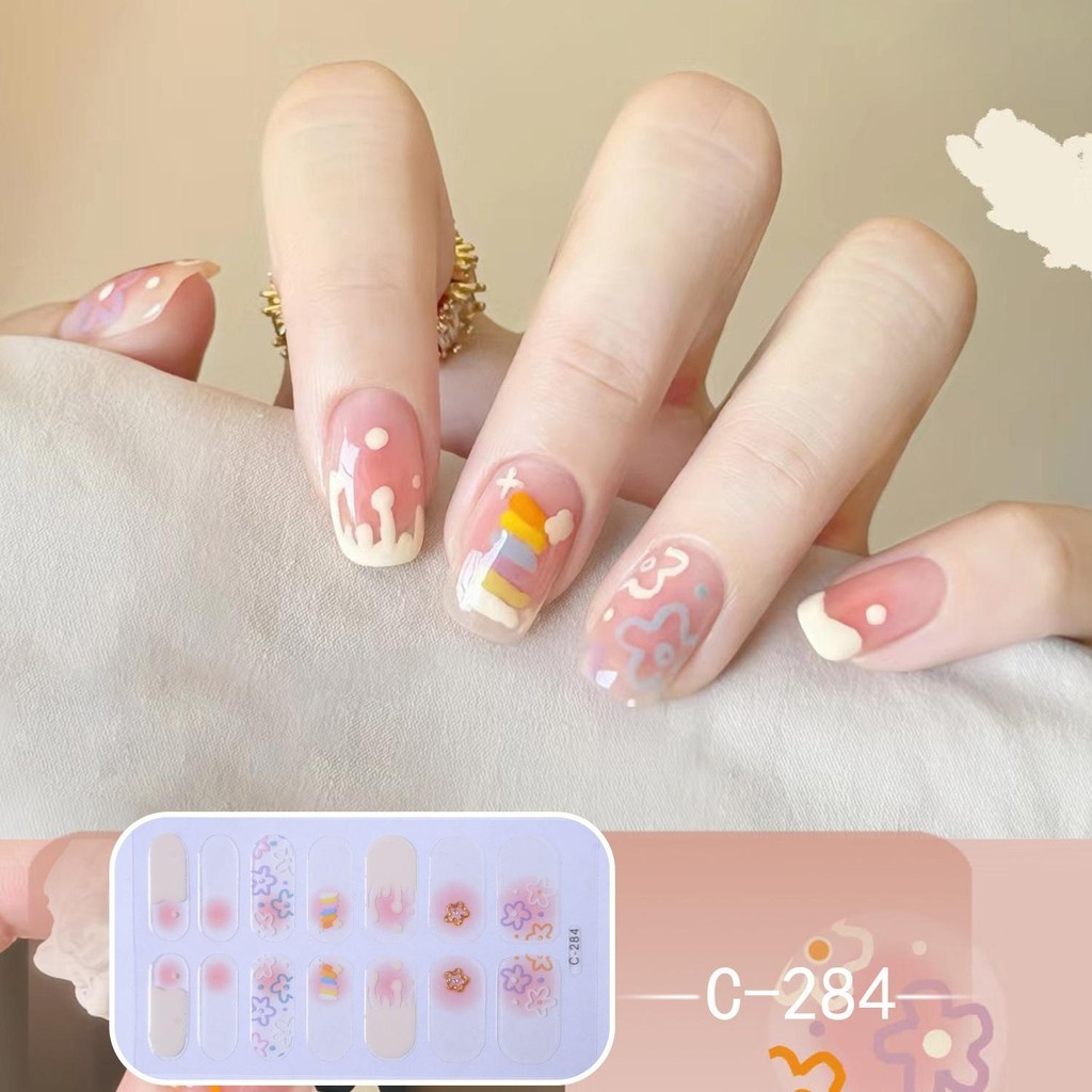 เพียงแค่เคลือบเจลทับสติกเกอร์ ก็จะได้เล็บเจลที่ติดทนมาก สวยจริงๆ ไม่หลุด ไม่ลอก