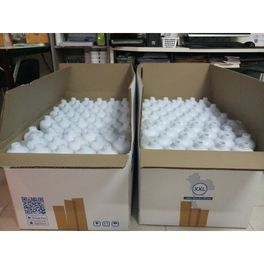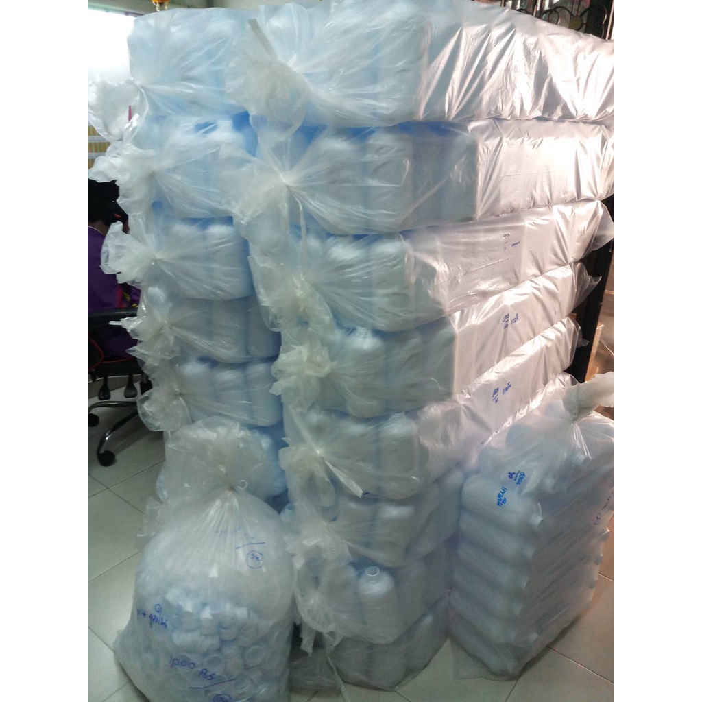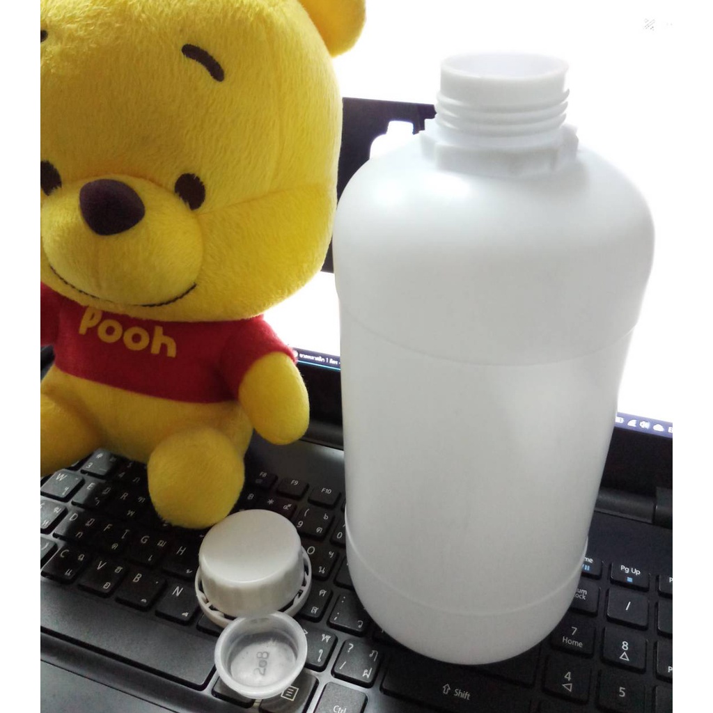 ขวดเปล่าพลาสติก HDPE ขนาด 1 ลิตร (ลัง 100 ขวด) เนื้อพลาสติกสีขาว พร้อมฝาปิด และจุกปิดใน