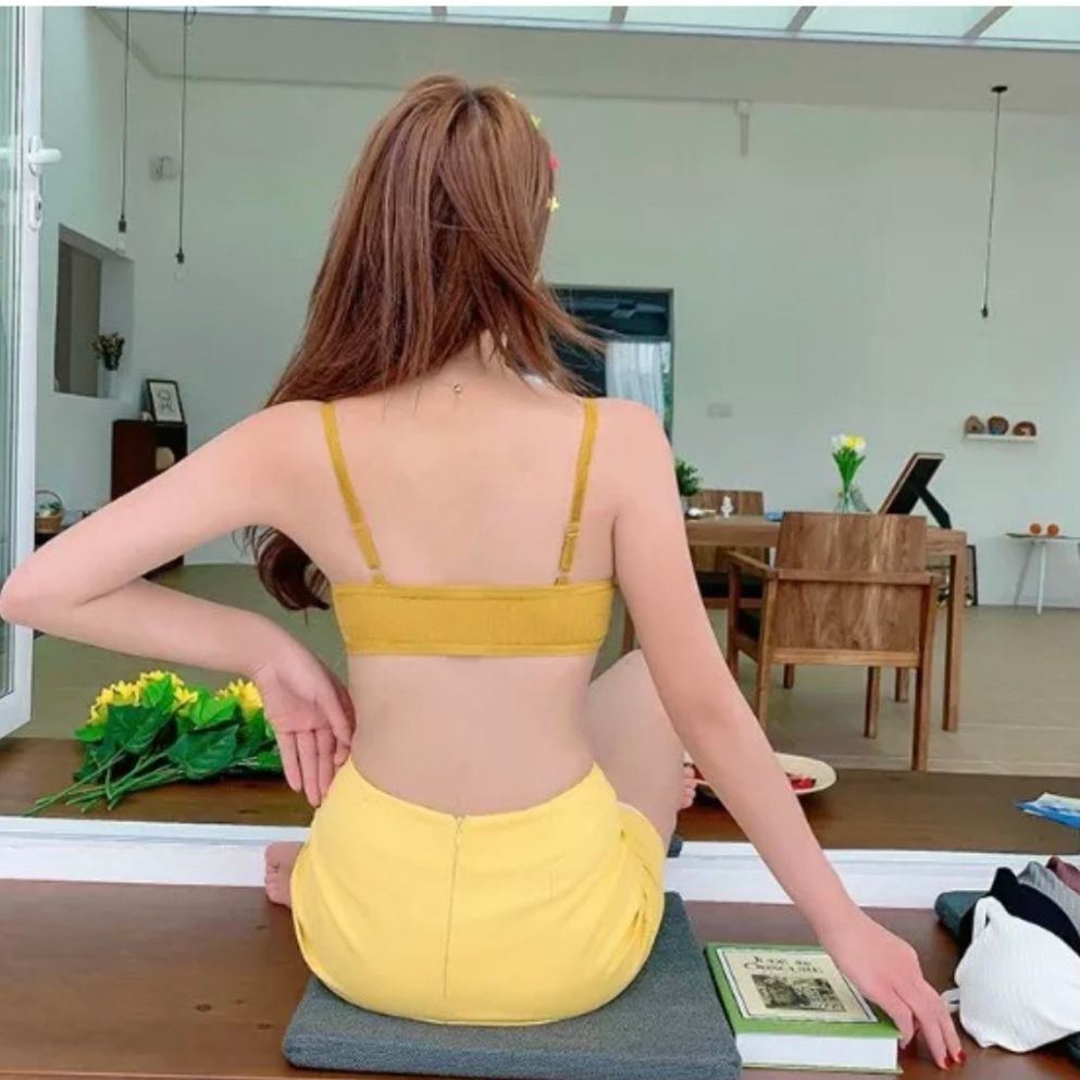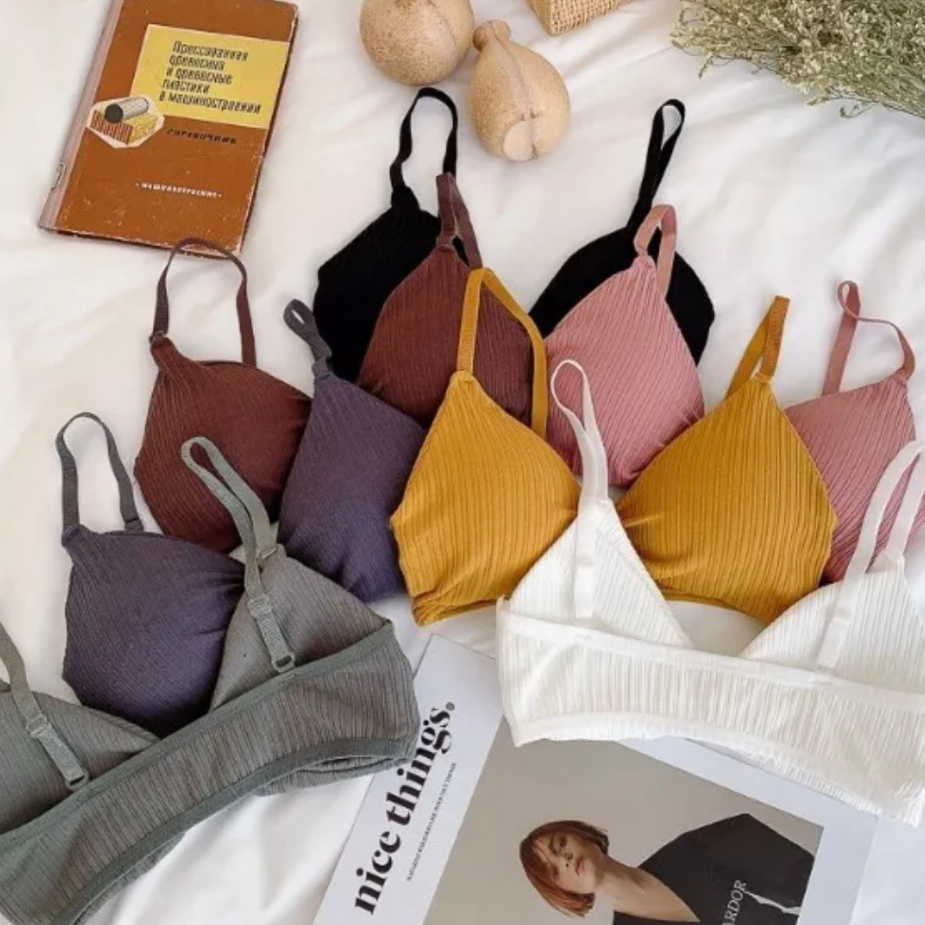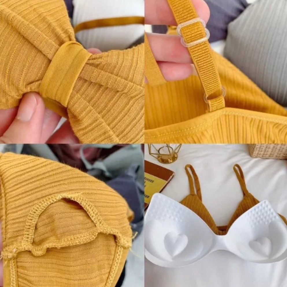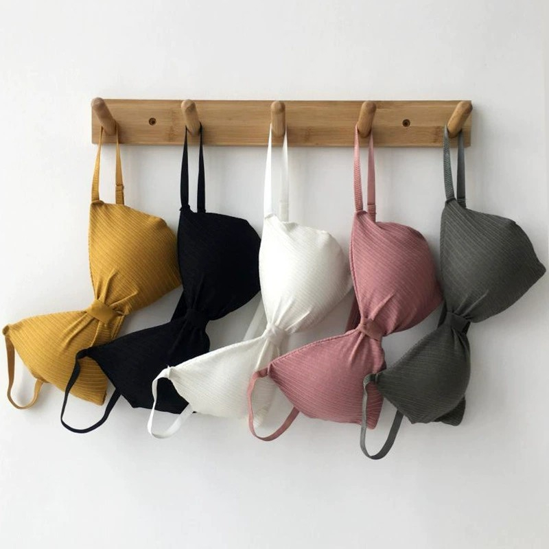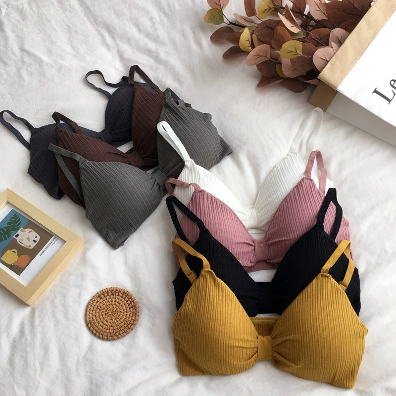 Bramin เสื้อใน รูปโบว์ ดันทรง แบบสวม เสื้อในไร้โครง ฟองน้ํา ถอดซักได้ ผ้าร่อง ทรงบิกนี่ สายปรับได้