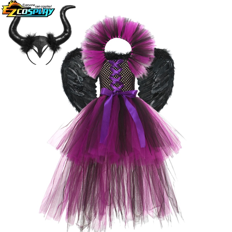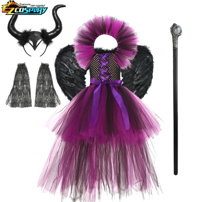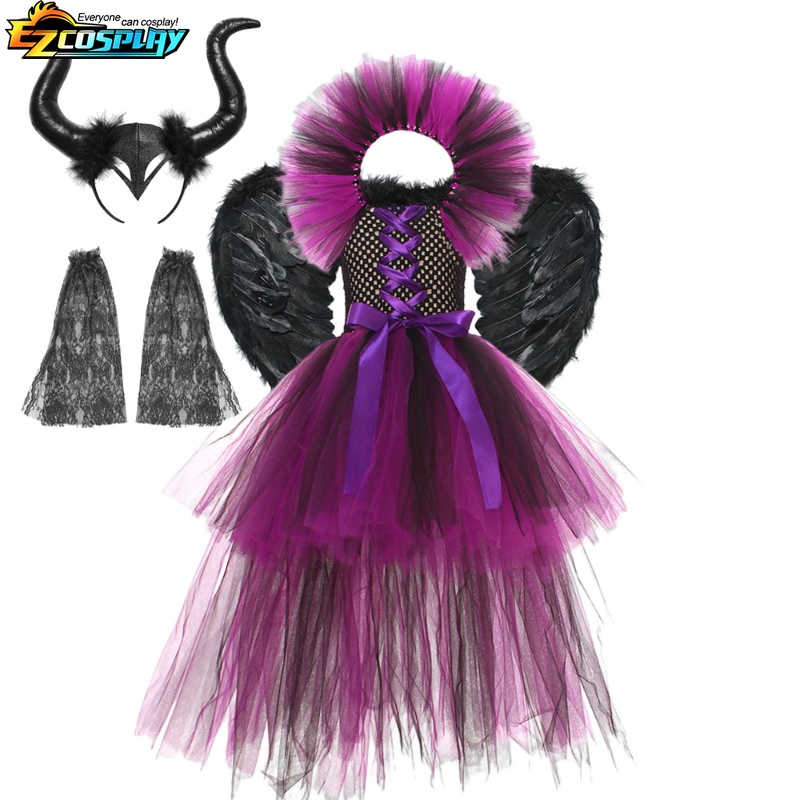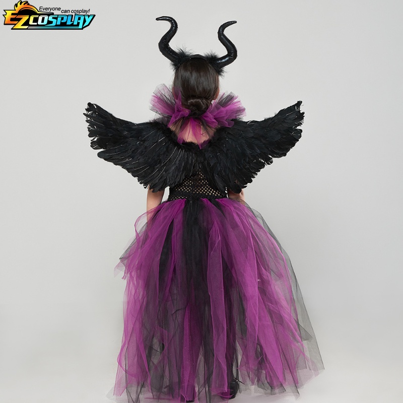เครื่องแต่งกายคอสเพลย์ แม่มดดิสนีย์ ราชินีปีศาจ เทรลลิ่ง สีดํา สําหรับเด็กผู้หญิง และผู้ชาย