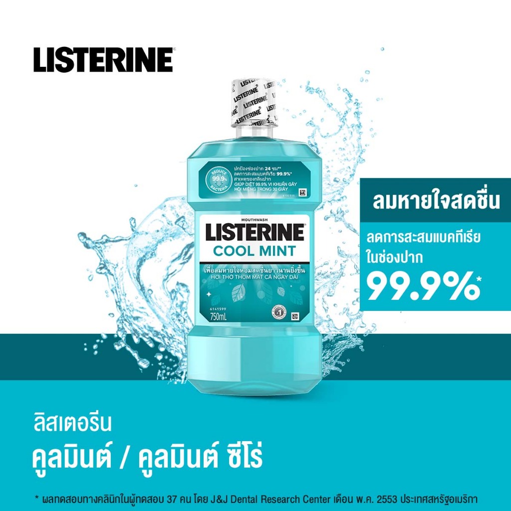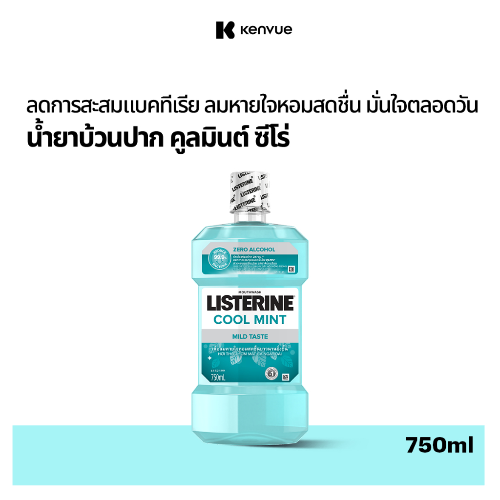 ลิสเตอรีน น้ำยาบ้วนปาก คููลมินต์ ซีโร่ 750มล. Listerine mouthwash Coolmint Zero 750ml. Listerine Pride Packaging