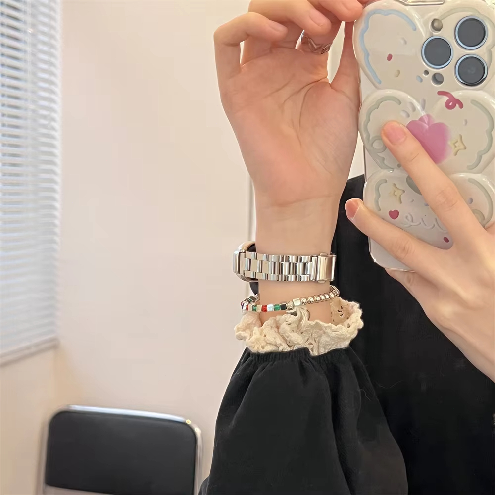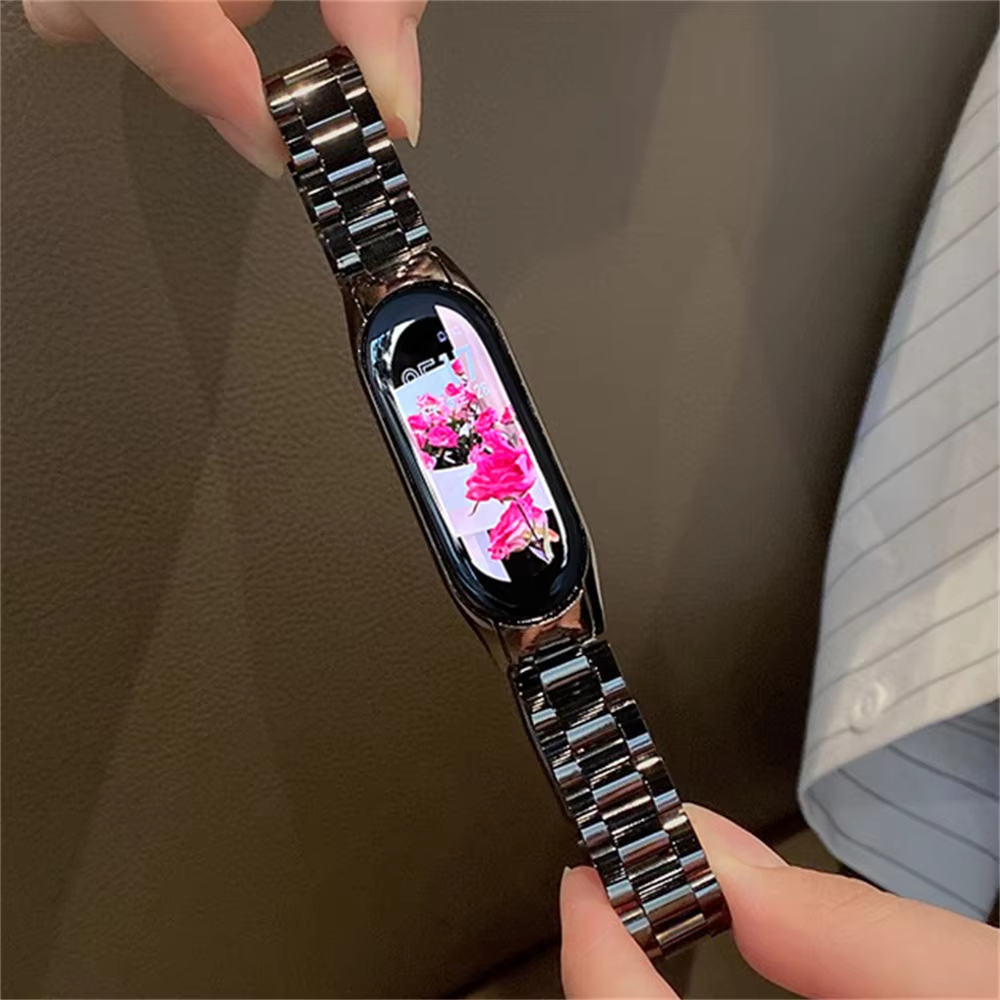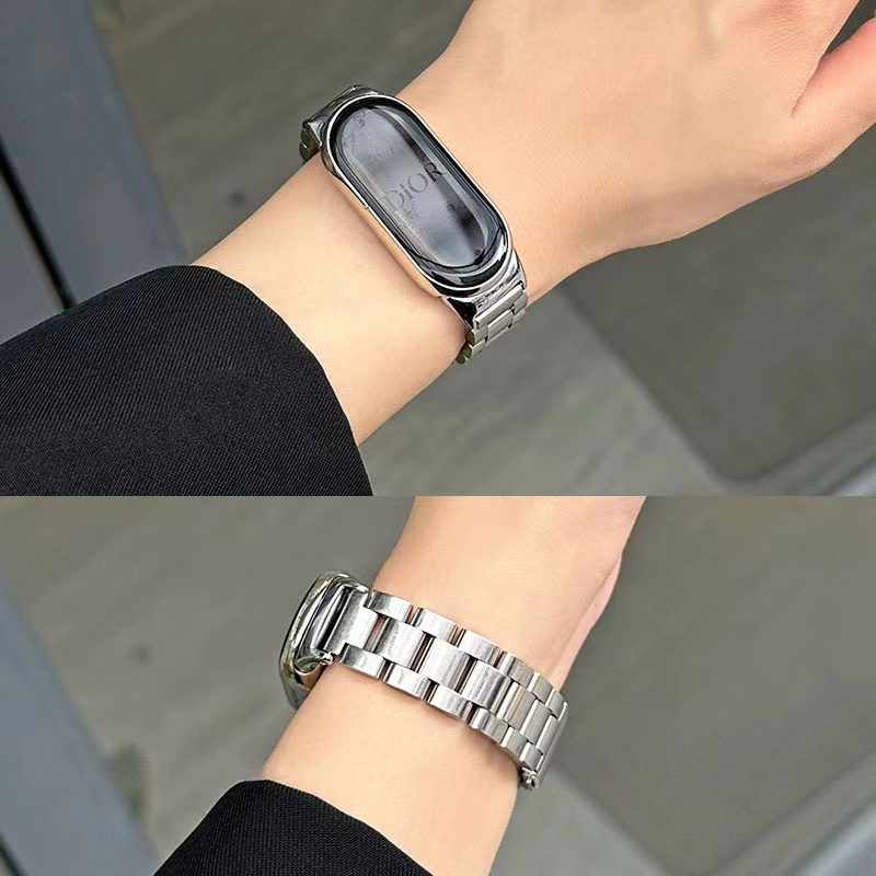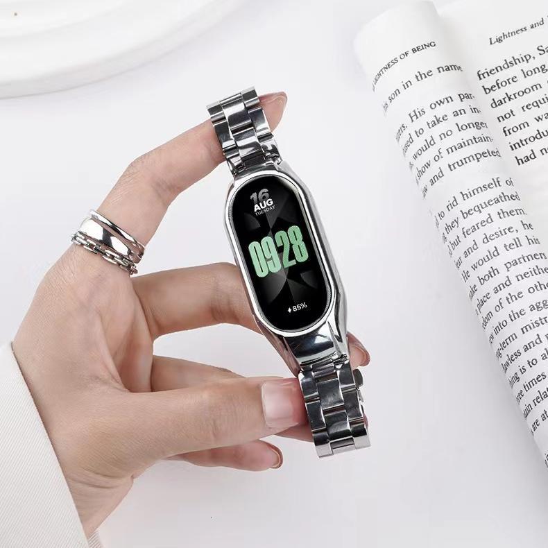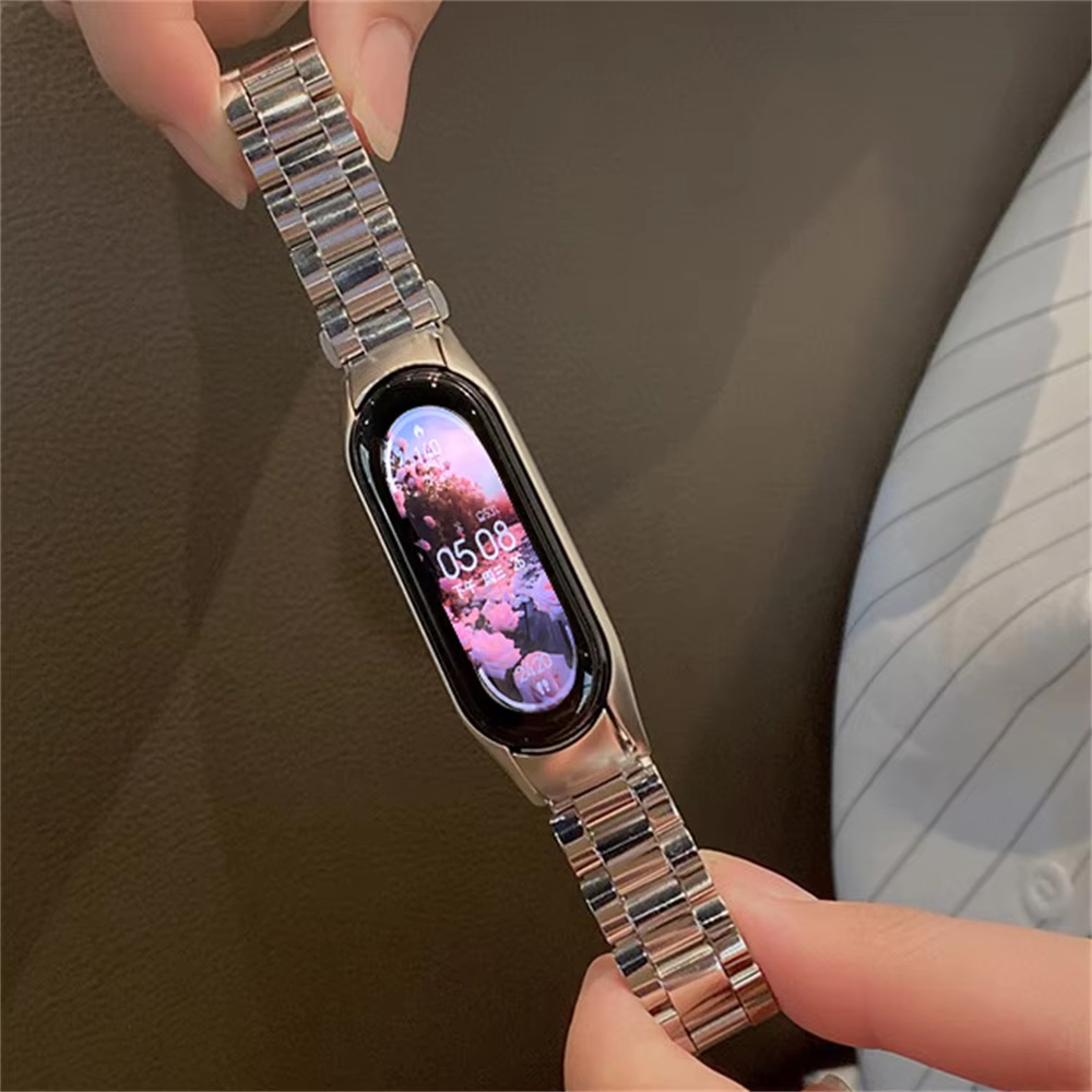 สายรัดสําหรับ เสี่ยวหมี่ ไมล์ วงดนตรี Xiaomi Band 10/9 ไมล์ วงดนตรี Mi Band 3 / 4 / 5 / 6 / 7 / 8 สายโลหะสร้อยข้อมือสแตนเลส เสี่ยวหมี่ ปราดเปรื่อง วงดนตรี 8/9 สายรัดข้อมือแบบใช