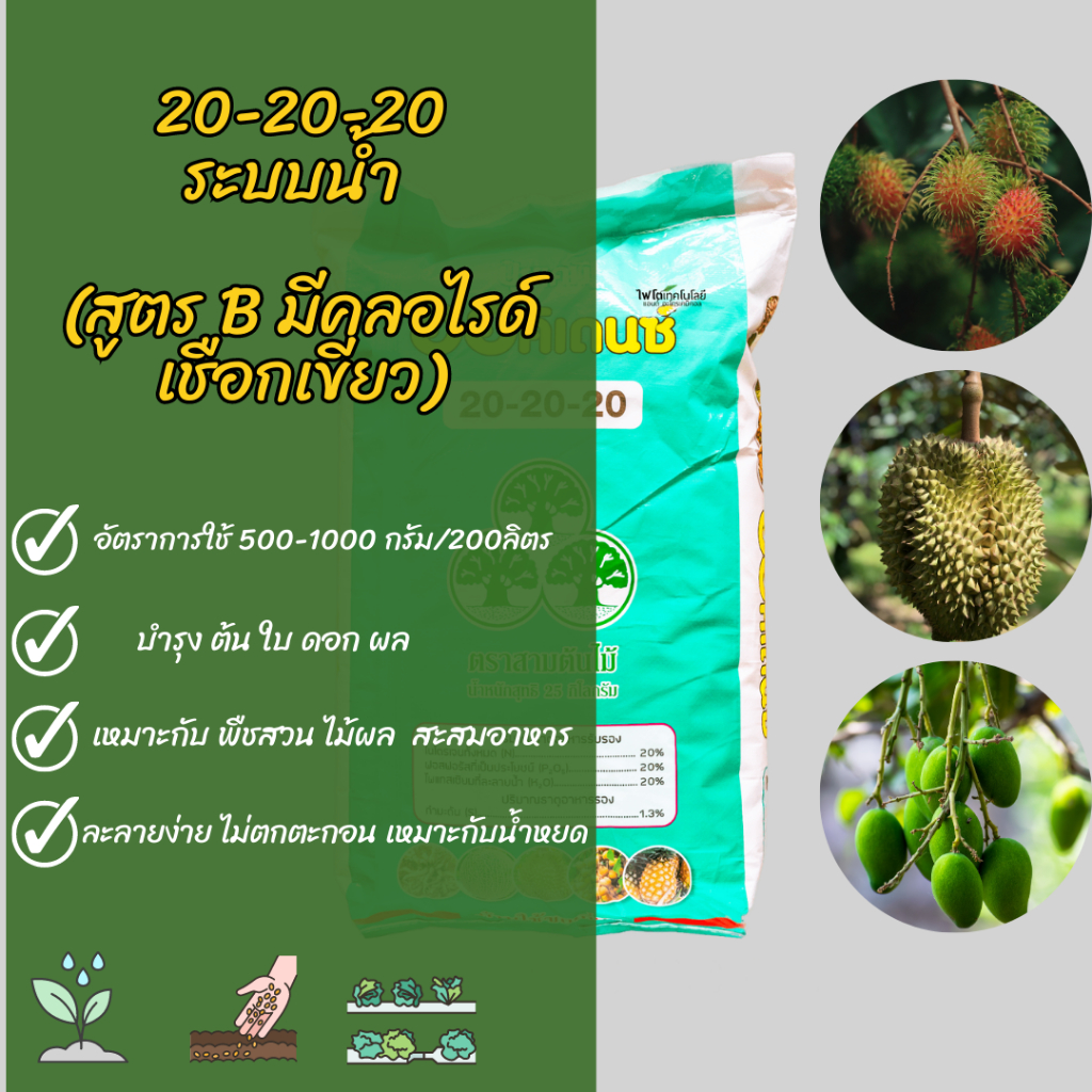 ปุ๋ยระบบน้ำ ออคิเดนซ์ ปุ๋ยเกล็ด 20-20-20 (สูตร B มีคลอไรด์ เชือกเขียว) บรรจุ 25 กิโลกรัม