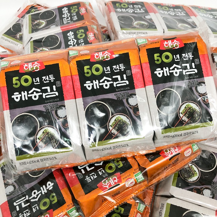 สาหร่ายเกาหลี ของแท้ 100% 1 แพ็ค 3 ห่อ KOREAN SEAWEED สาหร่ายอบปรุงรส นำเข้าจากเกาหลี 김