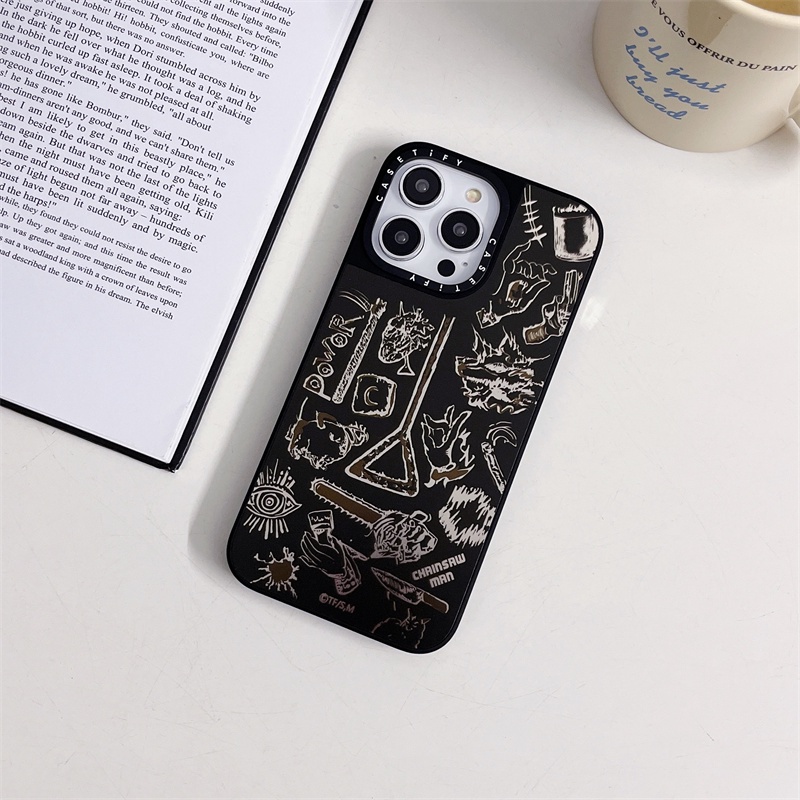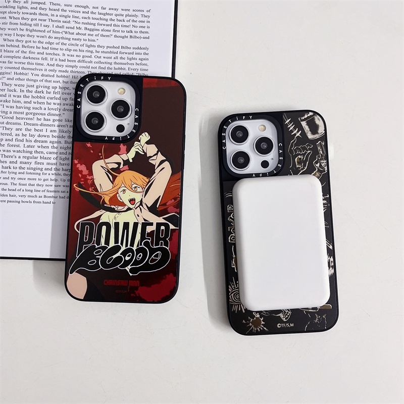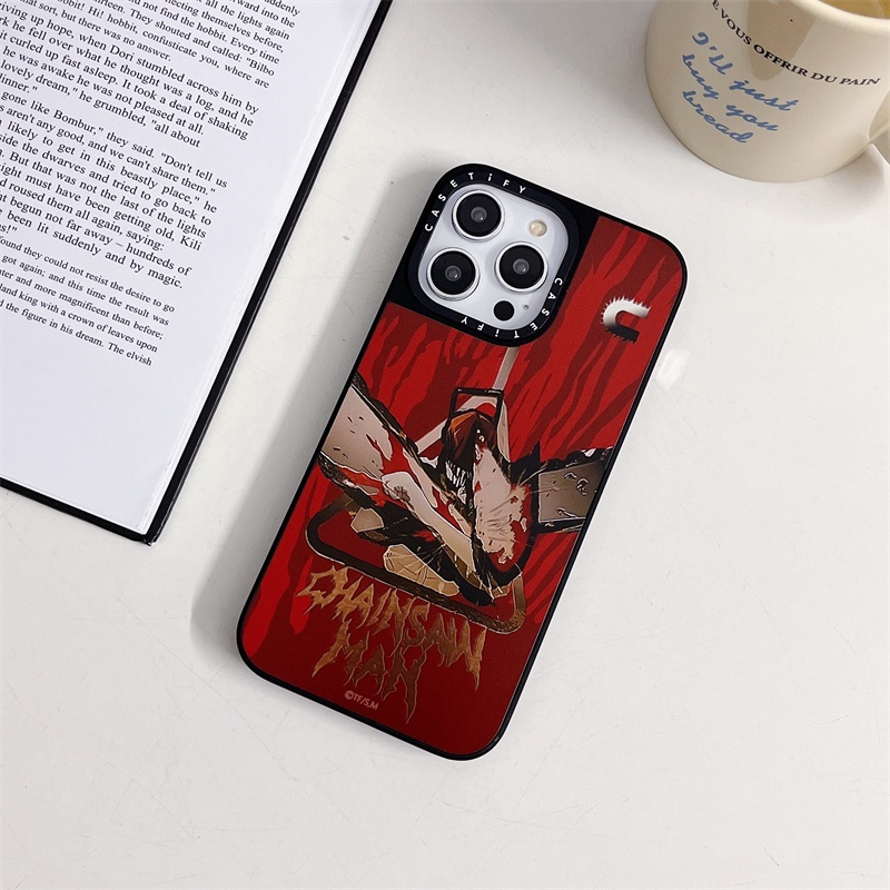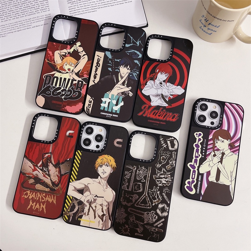Casetifg เคสโทรศัพท์มือถือ ซิลิโคนแข็ง กันกระแทก ป้องกัน ปิดด้านหลัง แบบแม่เหล็ก ลายอะนิเมะ Chainsaw Man พร้อมกล่อง สําหรับ iPhone 12 13 14 15 Pro Max