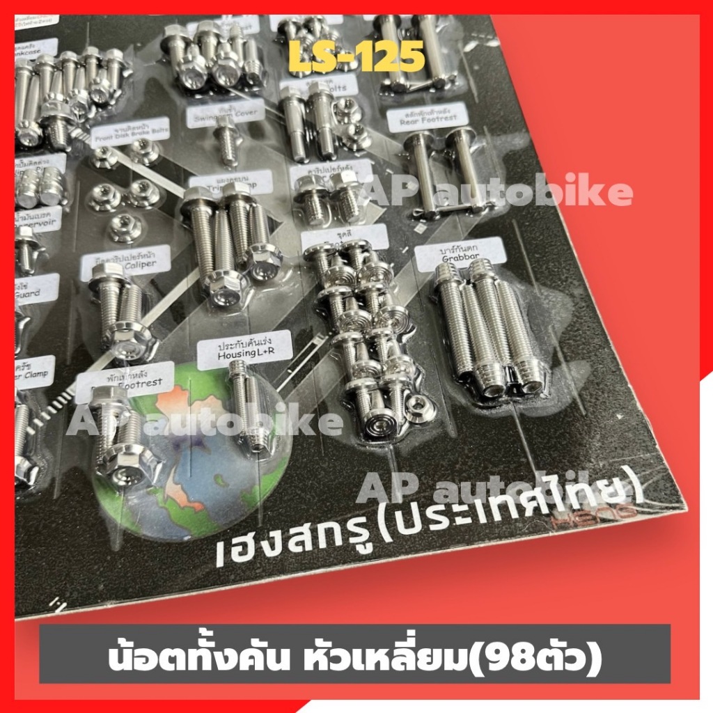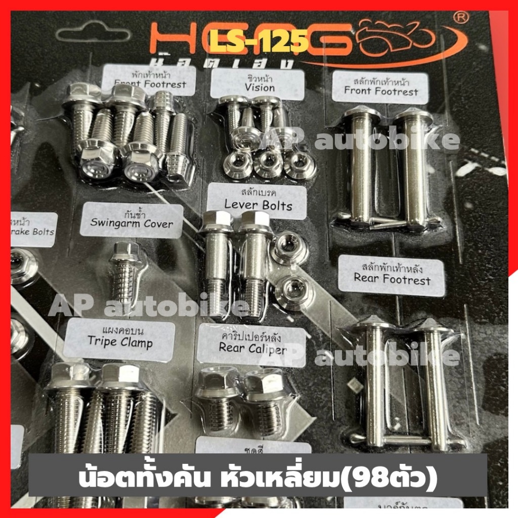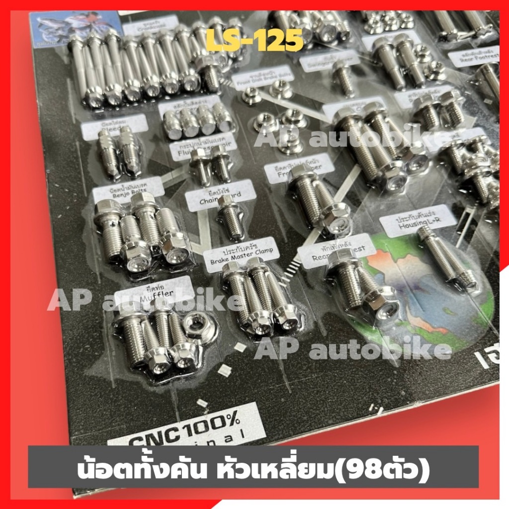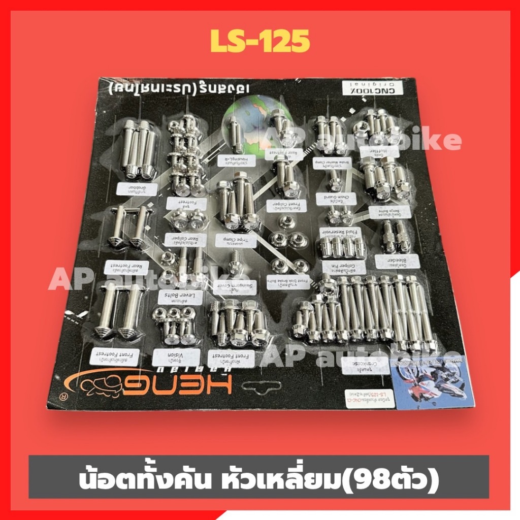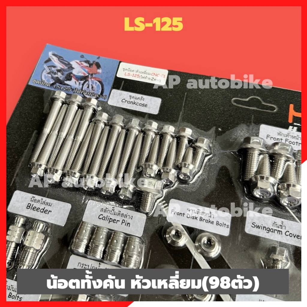น้อตทั้งคันLS-125 รุ่นไฟท้าย2ดวง สแตนเลสหัวเหลี่ยม (101ตัว)