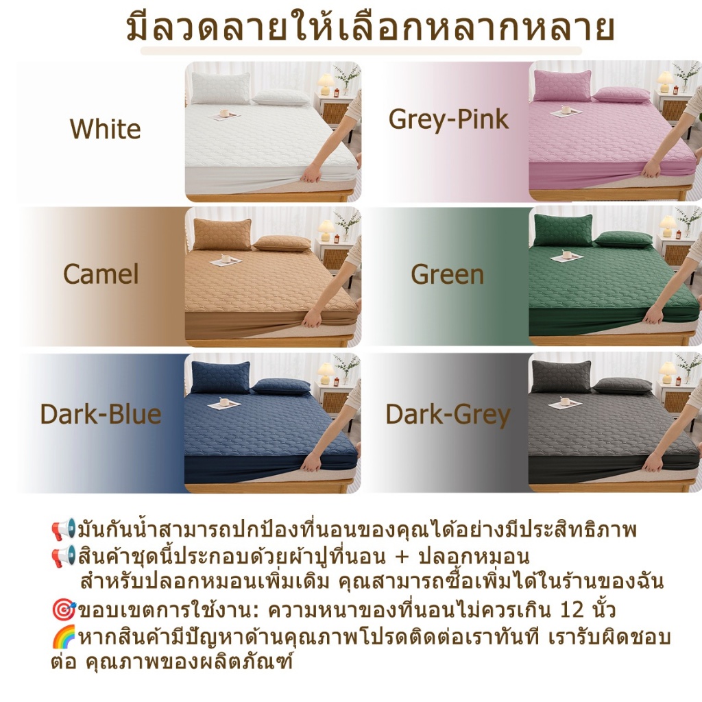 J-MU ผ้าปูที่นอนกันน้ำ ชุดผ้าปูที่นอน 6ฟุต 5ฟุต 3.5ฟุต 3ฟุต ป้องกันไรฝุ่น ที่นอนกันน้ำ 12 นิ้ว
