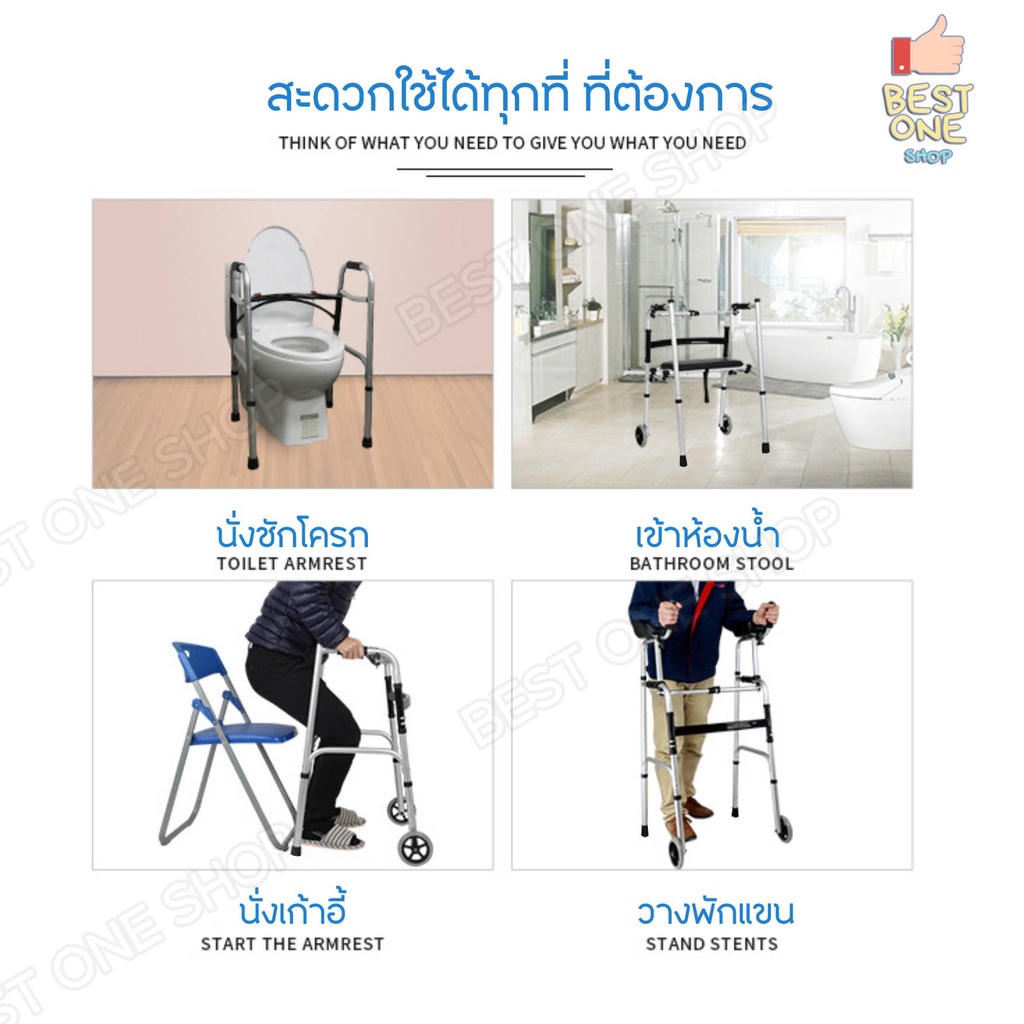 Walker วอล์คเกอร์ อุปกรณ์ช่วยเดิน ฝึกเดิน 4 ขา มีล้อหน้า-หลัง ปรับระดับได้ พร้อมที่นั่ง Yade รุ่น YC8230 (แบบมีที่วางแขน