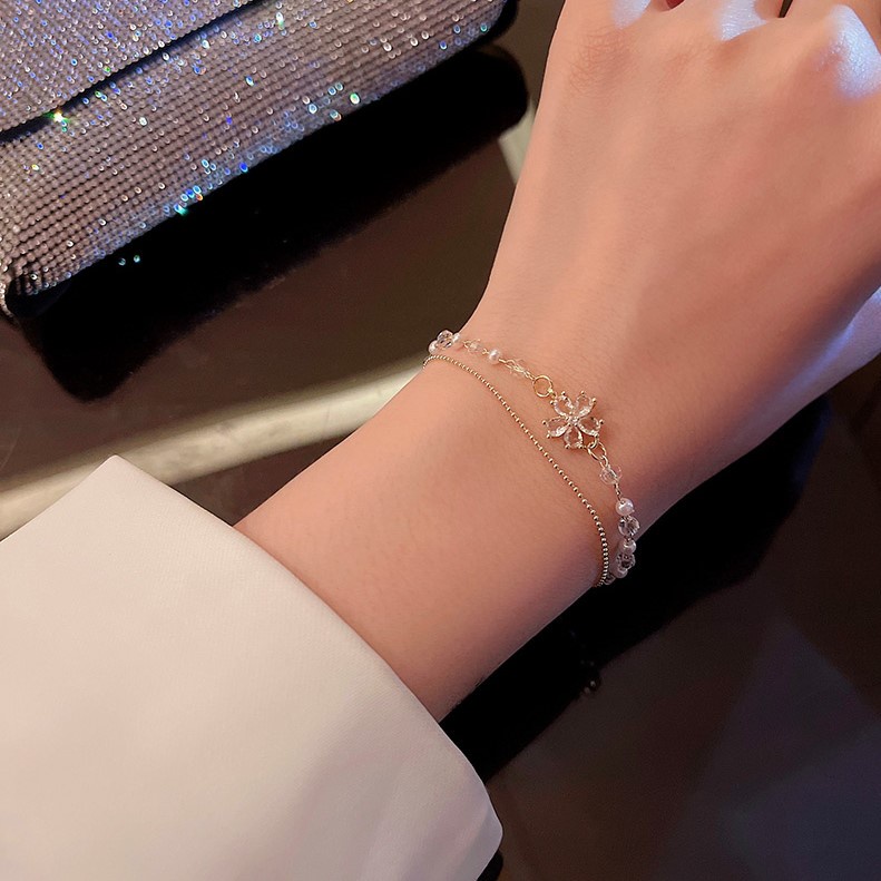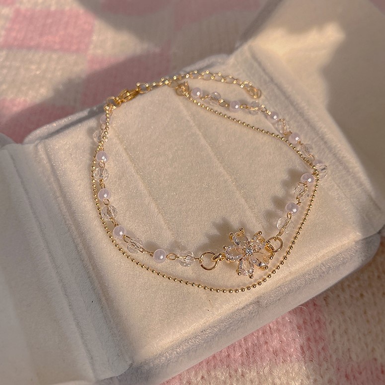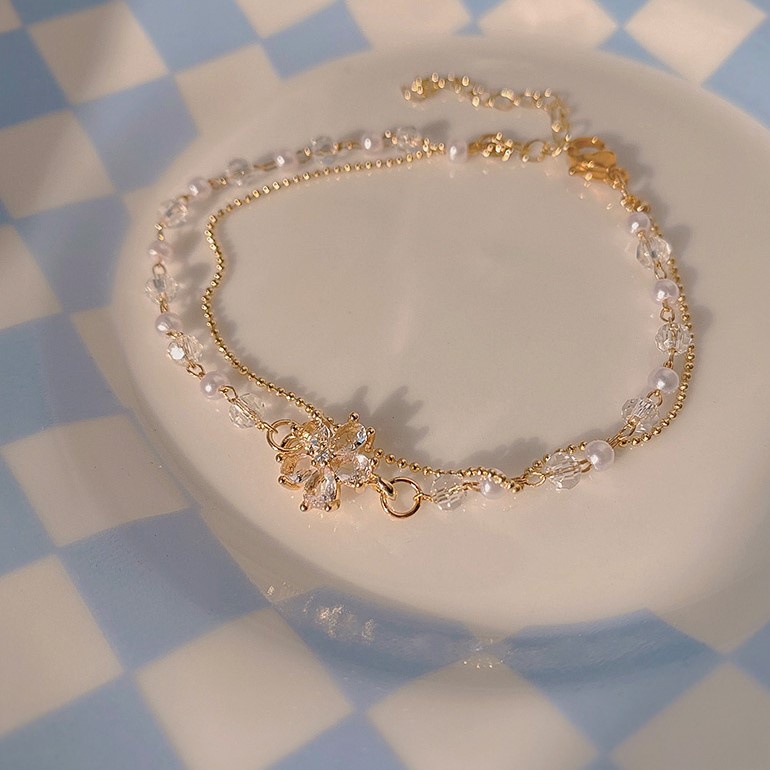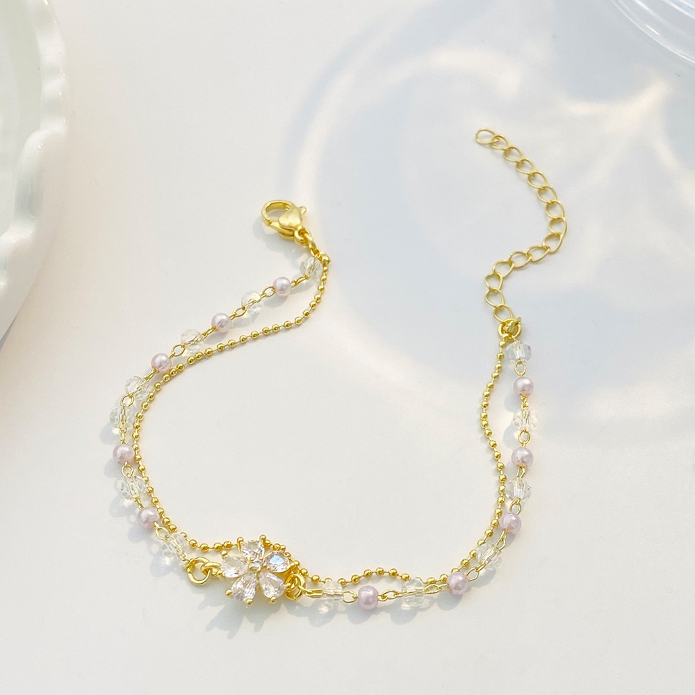 สร้อยข้อมือ ประดับคริสตัล เพทาย ไข่มุก และดอกไม้ คุณภาพสูง สีทอง เหมาะกับเป็นของขวัญ เครื่องประดับ สําหรับผู้หญิง