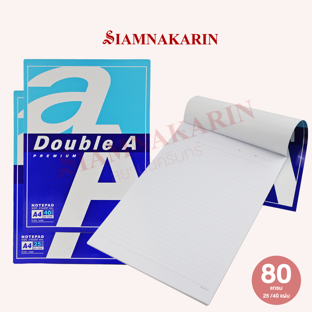 สมุดรายงาน A4 80แกรม เส้น2หน้า DoubleA 25แผ่น / 40 แผ่น