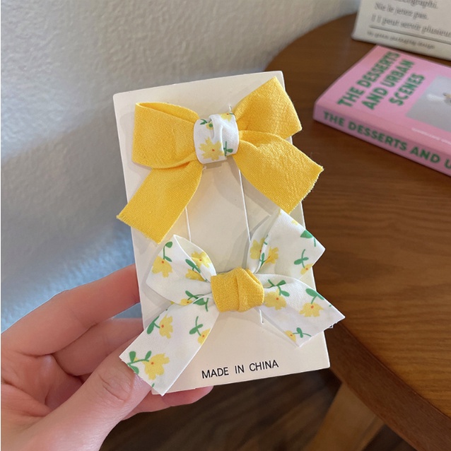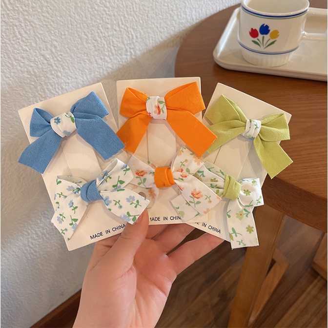 โบว์ติดผมเซต 2 ชิ้น สุดน่ารัก แฟชั่นเกาหลีทันสมัย กิ๊บติดผมสีพื้น+พิมพ์ลายดอกสีสันสดใส สวยงาม ราคาถูกและคุ้มค่าอย่างแน่นอน ลักษณะกิ๊บ : กิ๊บปากเป็ดสีเงิน มีให้เลือก 6 เซต #1 เซต-เหลือง #2 เซต-ชมพู #3 เซต-ม่วง #4 เซต-เขียว #5 เซต-ส้ม #6 เซต-ฟ้า