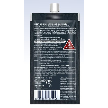 (6ซอง/กล่อง) Nivea Men Deep Acne Oil Clear Serum นีเวีย เมน ดีพ แอคเน่ ออยล์ เคลียร์ เซรั่ม