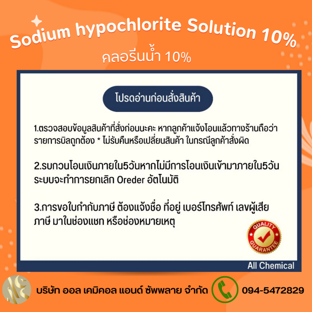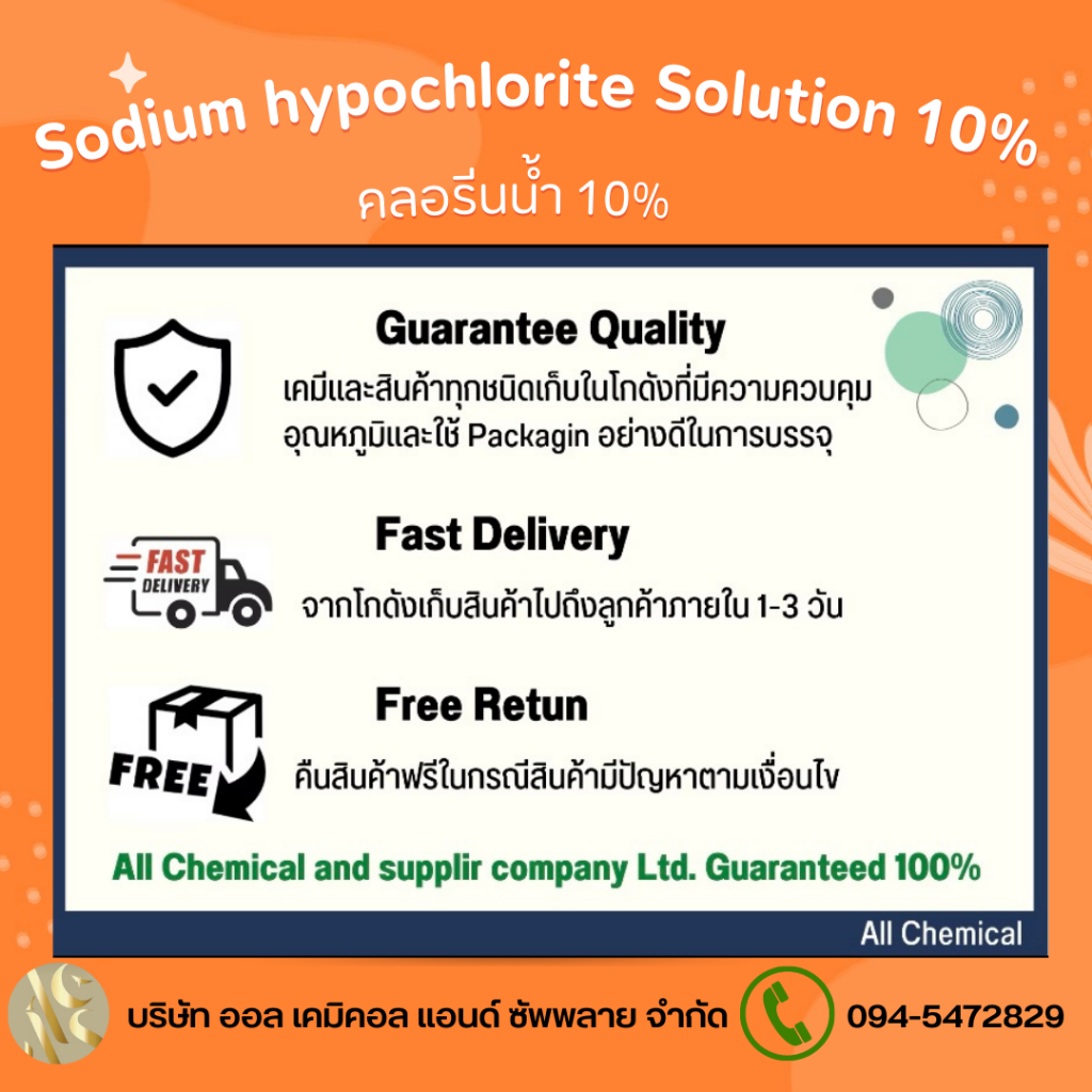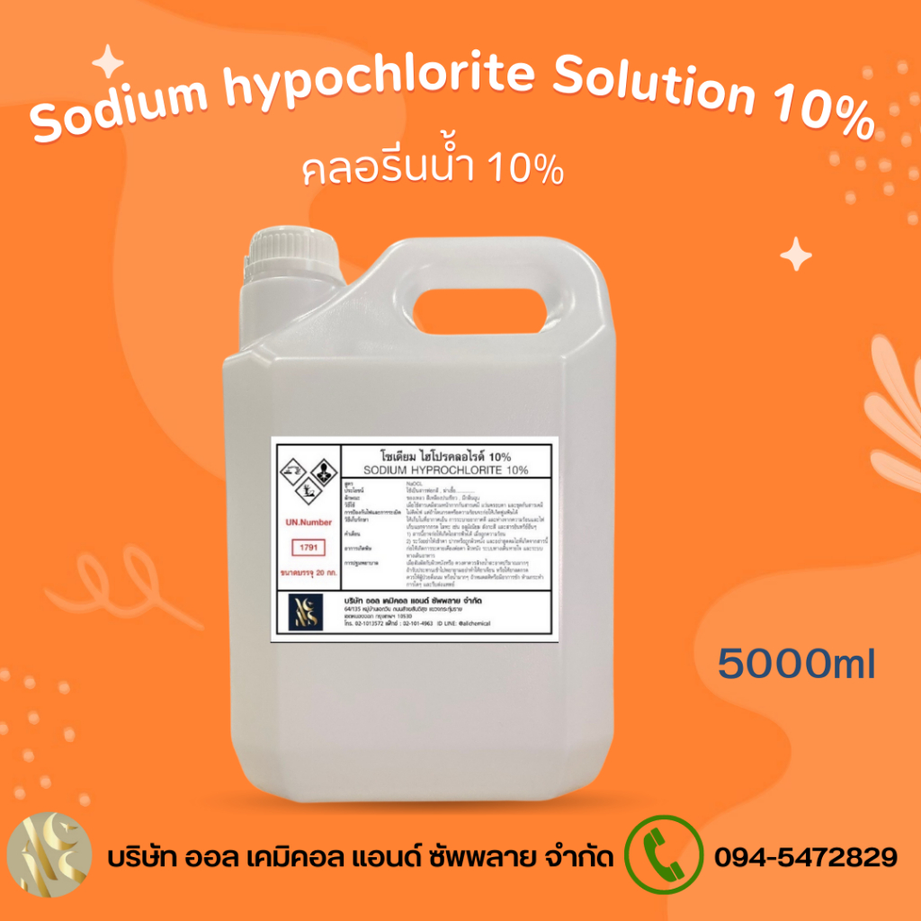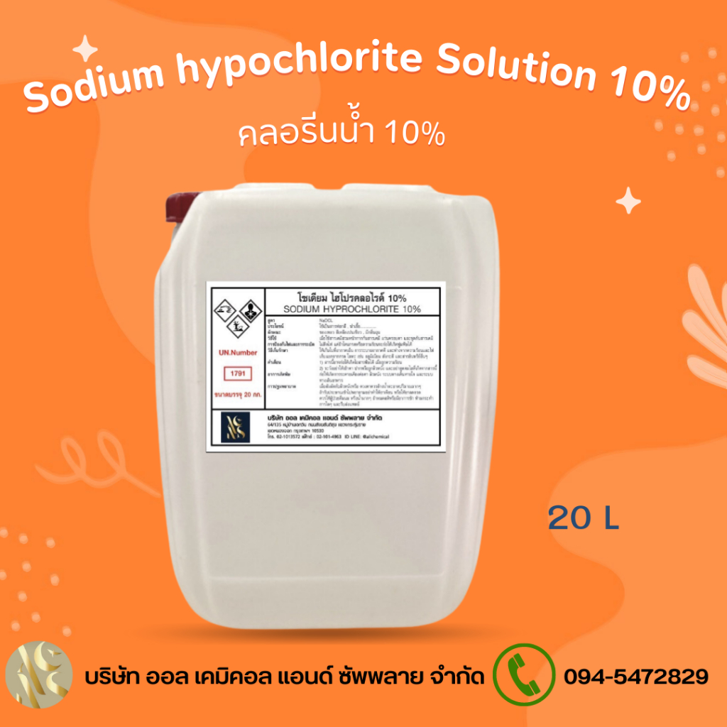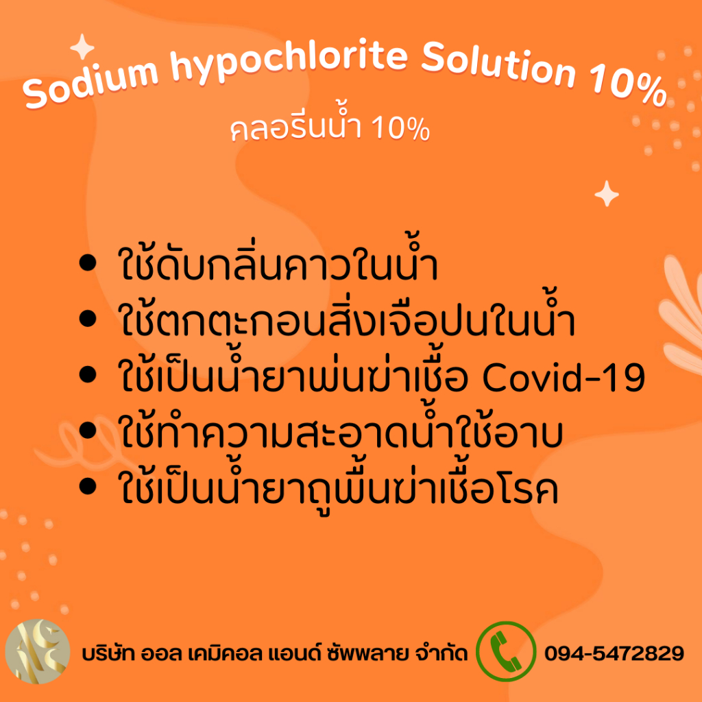 คลอรีนน้ำ 10% Solution (Sodium Hypochloride 10%) ขนาด 1L. สระว่ายน้ำ น้ำอาบ น้ำดื่ม น้ำประปา